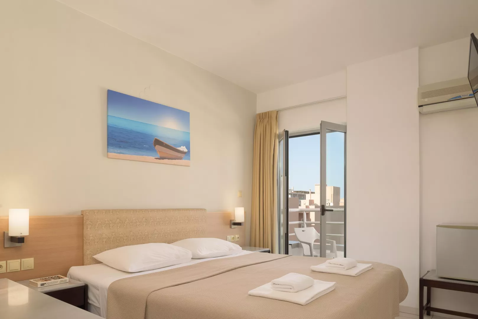 Dvojlôžková izba : kúpeľňa, WC, sušič vlasov, klimatizácia (zdarma), TV/sat., chladnička, telefón, trezor (za poplatok cca 2 EUR/deň), balkón alebo terasa. Ostatné typy izieb (pokiaľ nie je uvedené inak, majú izby vyššie uvedené vybavenie) Dvojposteľová izba, Superior: zrekonštruované izby