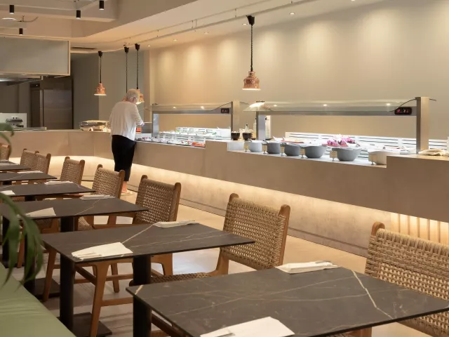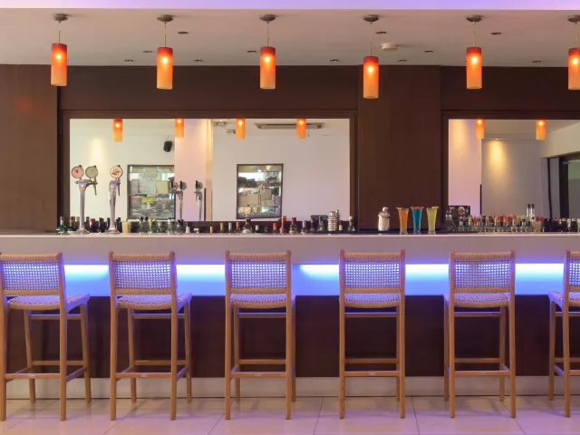 99 izieb, vstupná hala s recepciou, výťah, reštaurácia, bar. Vonku bazén, terasa na slnenie, lehátka a slnečníky zadarmo, osušky za zálohu, bar pri bazéne, snack bar.