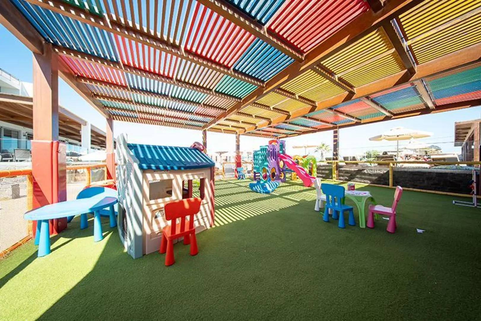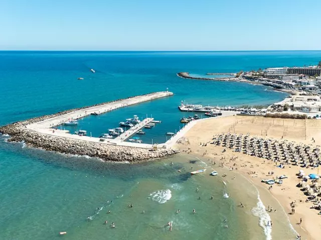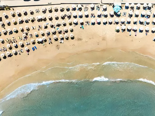 Verejná piesková pláž sa nachádza len 50 m od hotela a je prístupná cez komunikáciu. Pláž ponúka pozvoľný vstup do mora, plážový servis za poplatok a centrum vodných športov za poplatok.