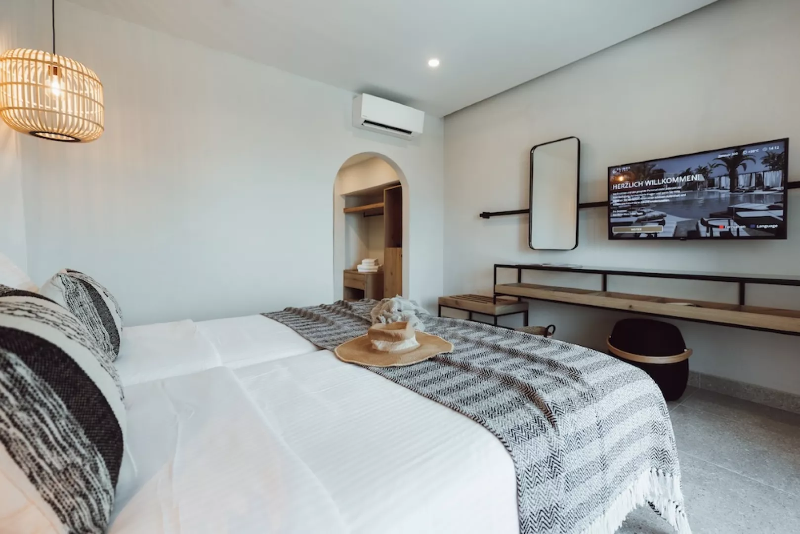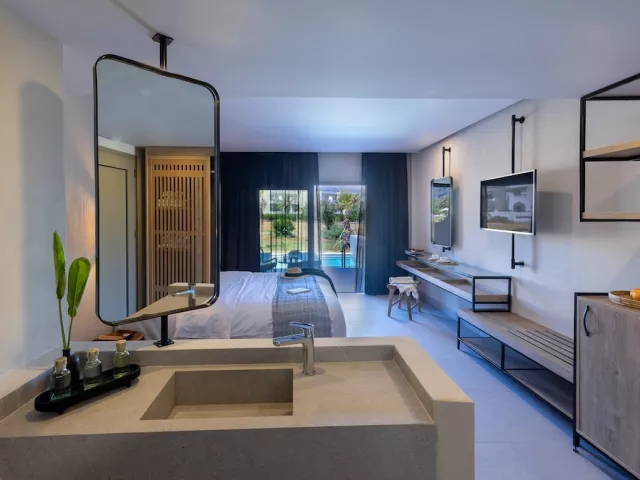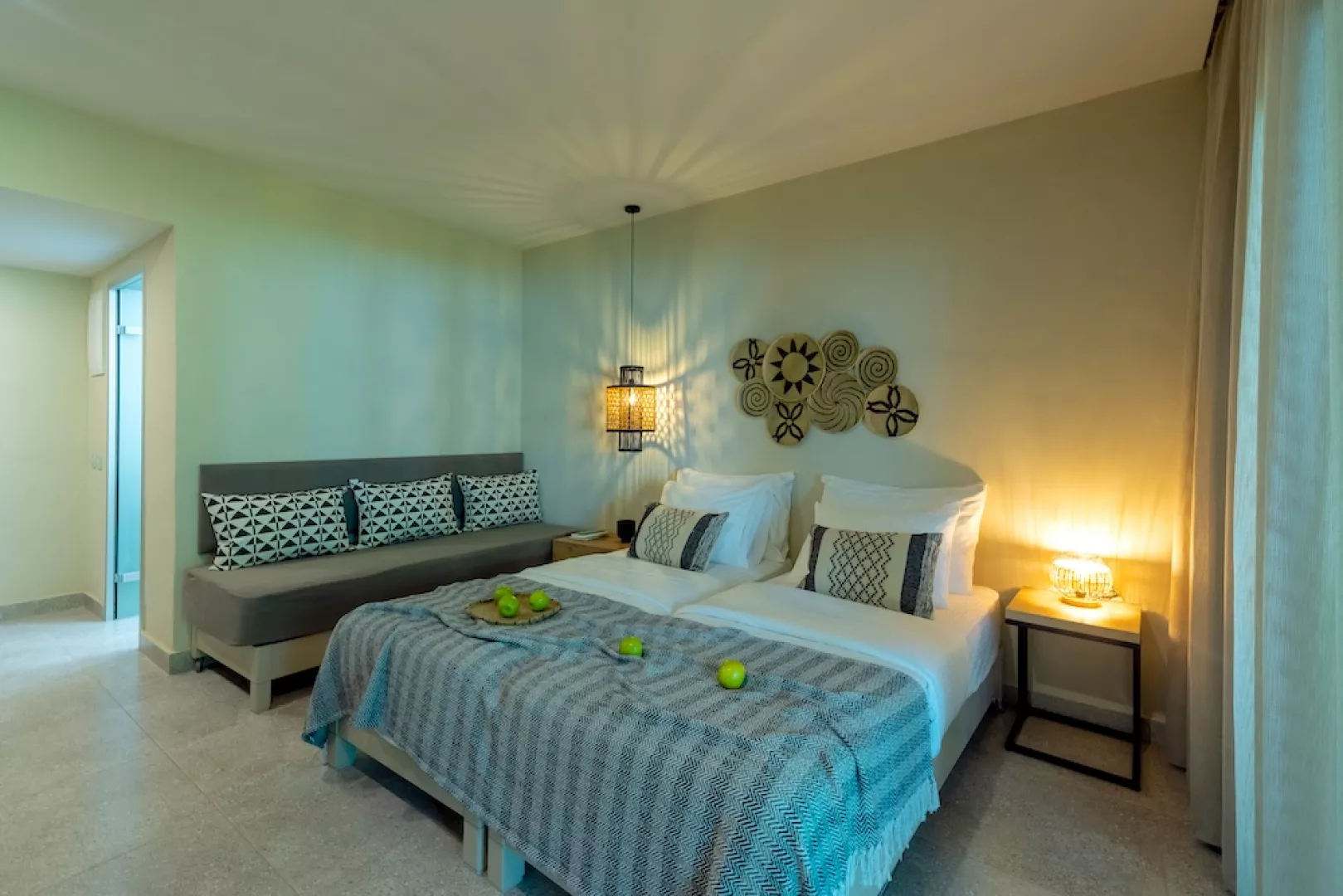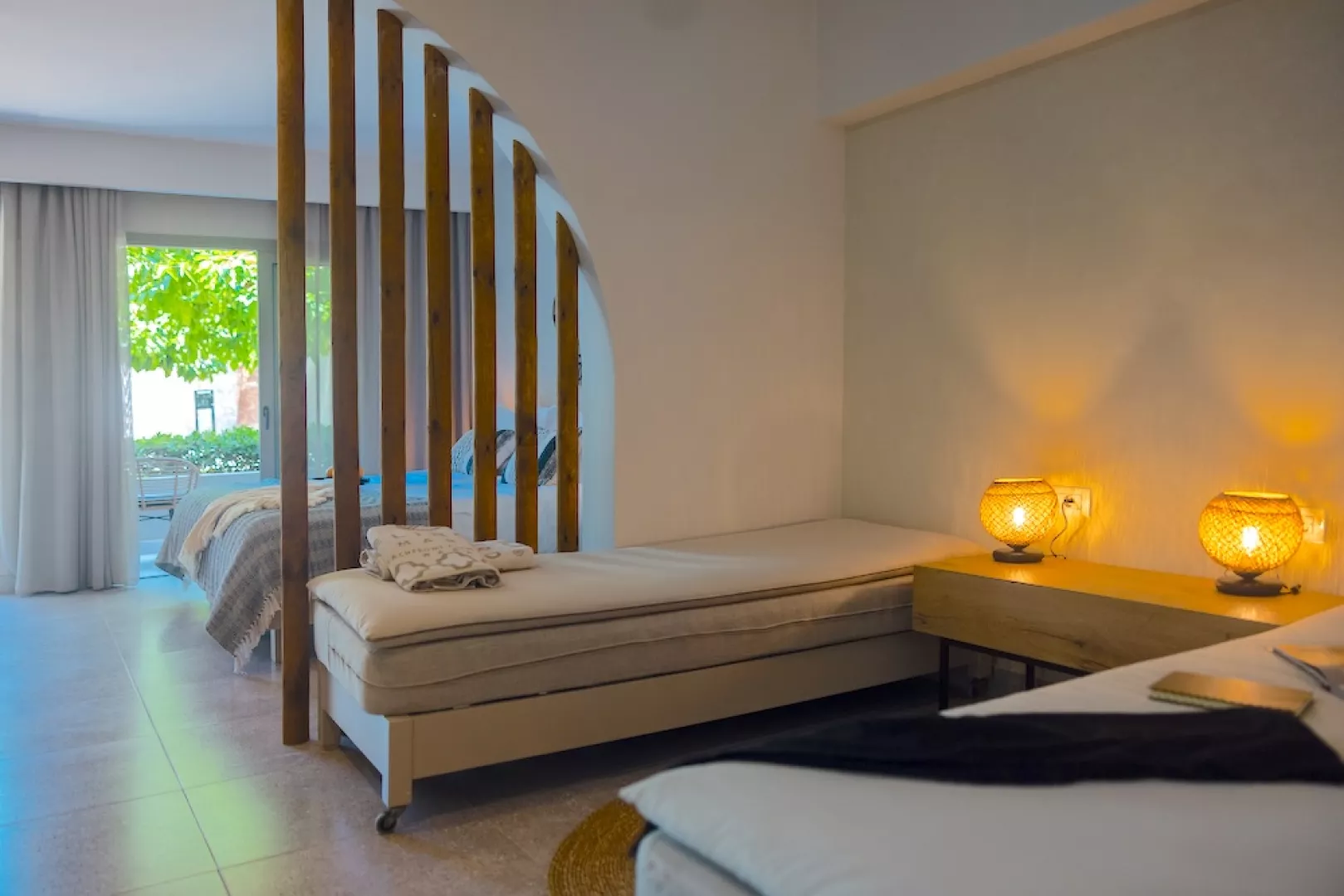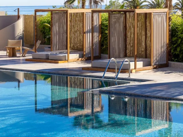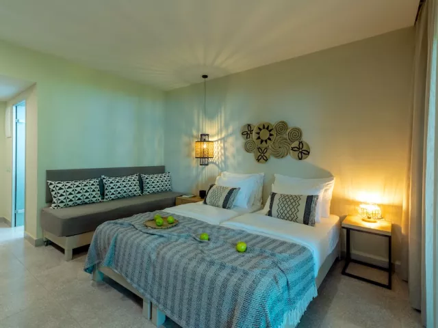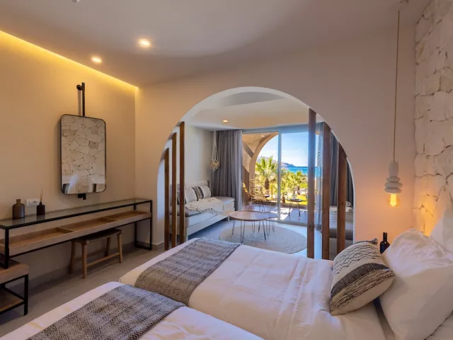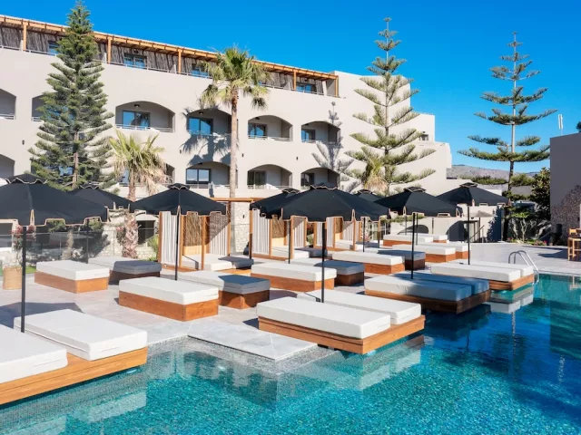 Hotel Eliros Mare Beachfront Poem sa nachádza priamo pri zlatistej pláži Kournas, ktorá je ocenená modrou vlajkou. Ponúka moderné a dizajnové ubytovanie s vysoko kvalifikovaným personálom a širokým spektrom služieb. K dispozícii sú rôzne typy izieb: dvojlôžkové izby superior, junior suity a izby s vlastným bazénom, všetky s klimatizáciou, WiFi, TV a súkromným balkónom alebo terasou.