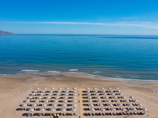 Hotel sa môže pochváliť širokou piesočnatou plážou s pozvoľným vstupom do vody, ktorá je ideálna pre deti a neplavcov. Na pláži sú k dispozícii ležadlá a slnečníky zdarma. Okrem pláže ponúka hotel aj pestré športové aktivity, vrátane animačných programov pre dospelých a deti, tenisových kurtov, fitness a vodných športov (za poplatok).