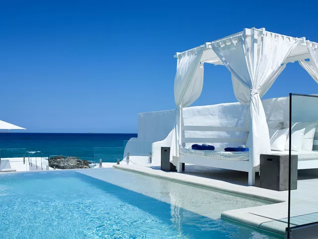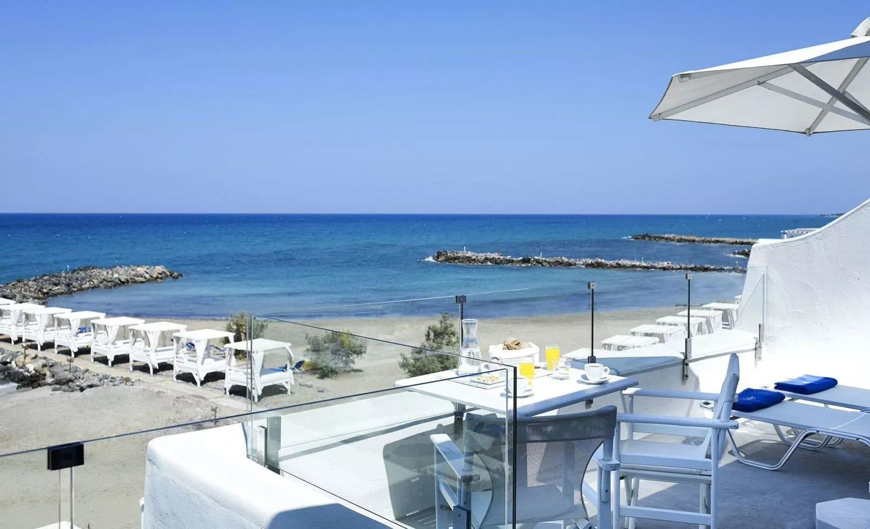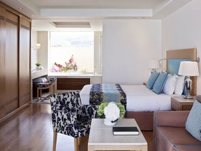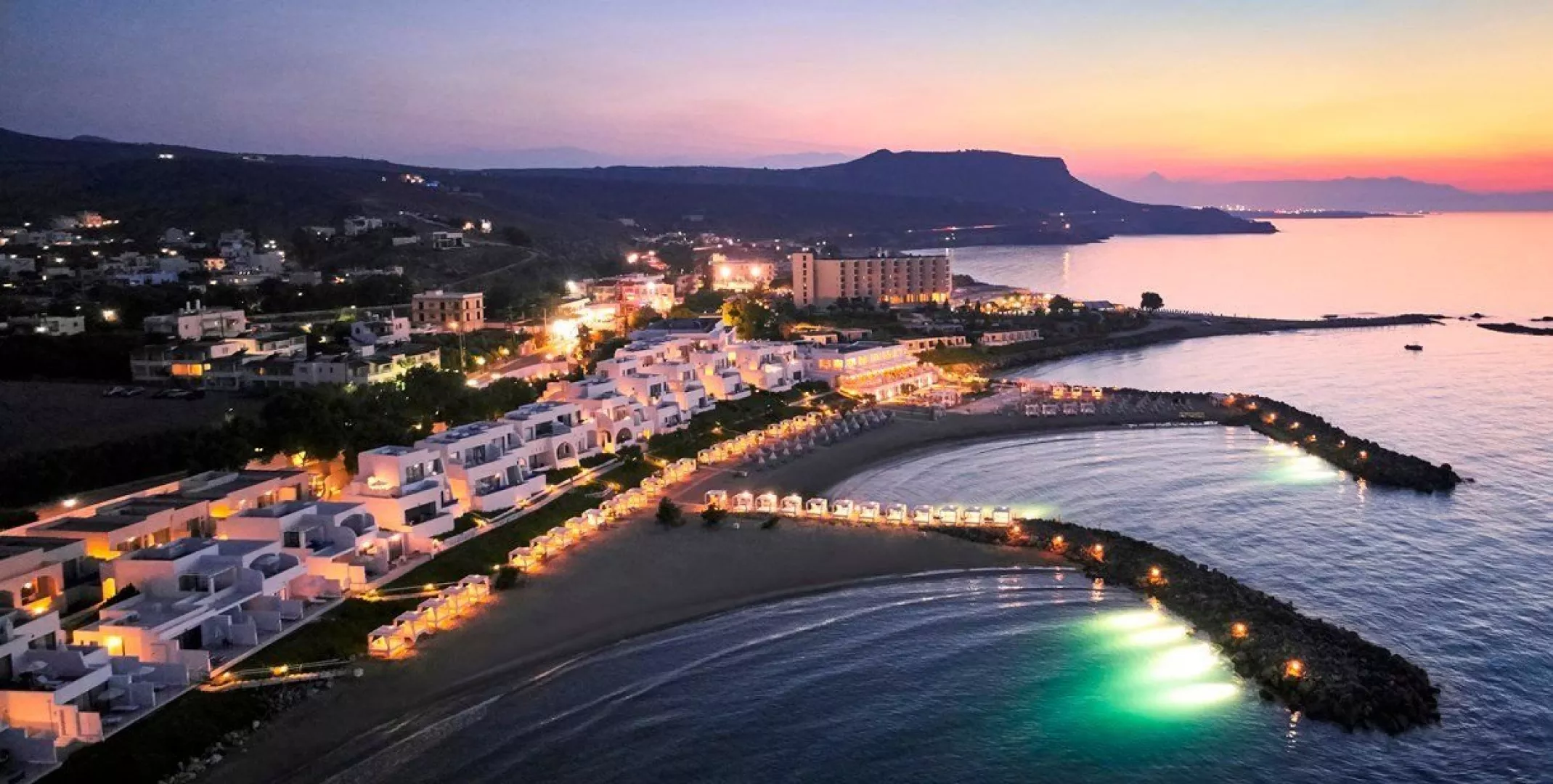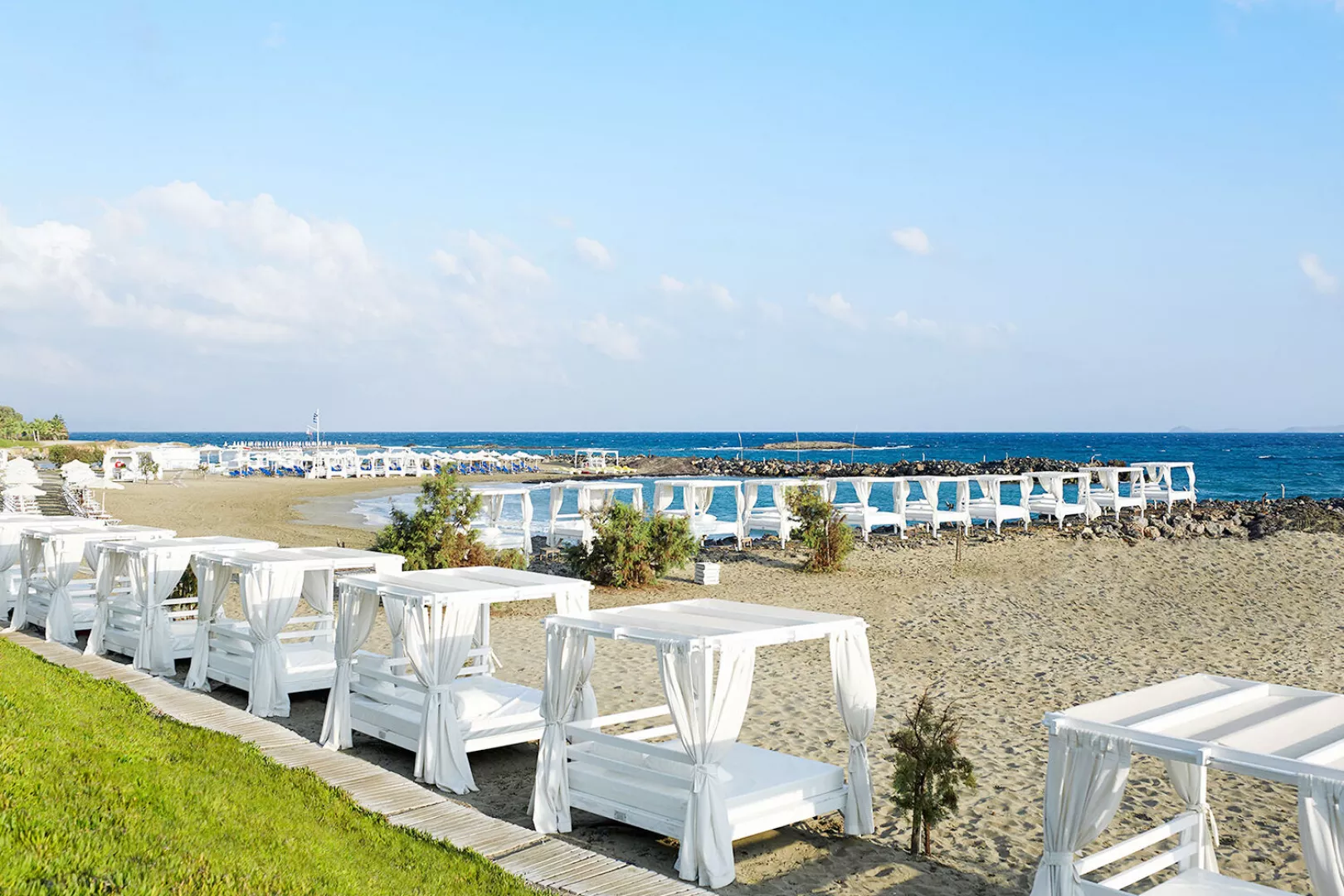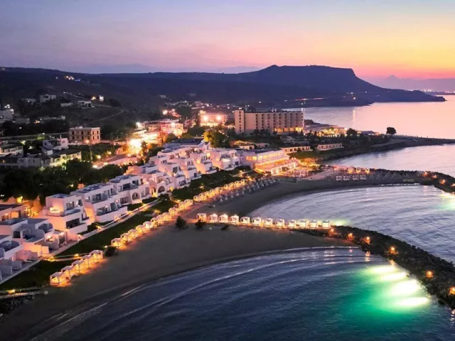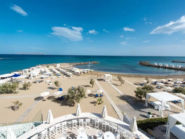 Celý hotelový komplex sa skladá z mnohých bungalovov, ktoré sa nachádzajú pozdĺž jednej z najkrajších piesočnatých pláží, známej svojou priezračnou tyrkysovou vodou. Nádherný výhľad na more umocňuje grécko-egyptská architektúra hotela. Tento elegantný hotel postavený v tradičnom krétskom štýle je ideálny na relaxáciu, ponúka však aj množstvo športových aktivít pre aktívnu dovolenku. Poskytuje širokú škálu programov a služieb, čím uspokojí aj náročnejších klientov.