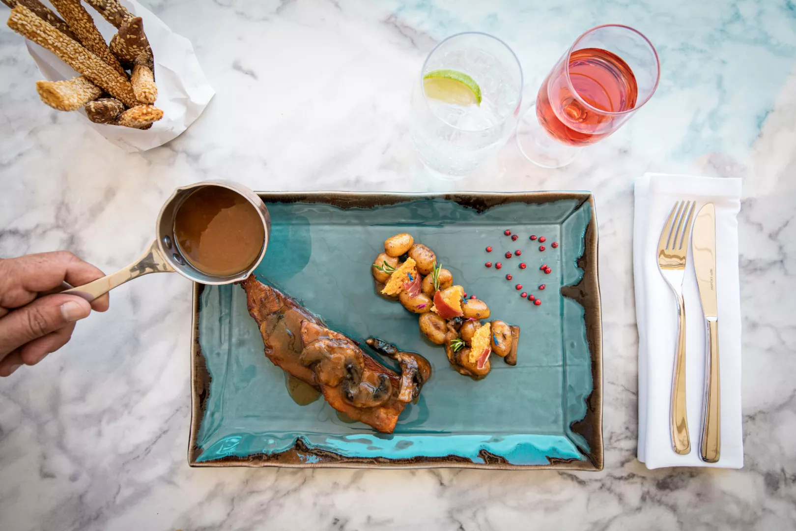 Hotel ponúka Ultra All Inclusive stravovanie s širokou škálou možností. Hlavná reštaurácia ponúka raňajky, obedy a večere formou bufetu. K dispozícii sú tiež tematické reštaurácie vrátane talianskej a ázijskej kuchyne. Na pláži a pri bazénoch sa podávajú rôzne snacky a lahôdky. Na večeru je potrebné formálne oblečenie.