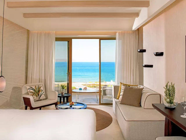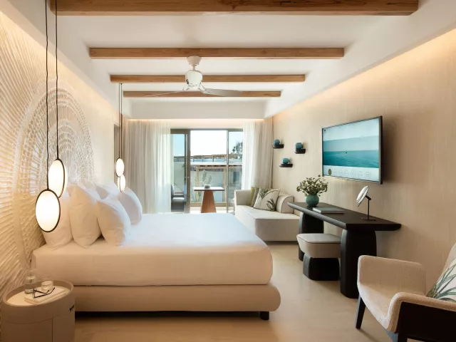 Izby sú moderne zariadené a k dispozícii sú rôzne typy, vrátane dvojlôžkových izieb Superior s výhľadom do záhrady alebo na more, rodinných apartmánov a luxusných suit s prístupom k bazénu. Všetky izby sú vybavené klimatizáciou, televízorom, minibarom, trezorom a balkónom alebo terasou.