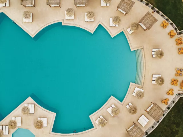 Komplex pozostáva z hlavnej budovy a niekoľkých vedľajších budov zasadených v krásnej záhrade. Nachádzajú sa tu vstupná hala s recepciou, hlavná reštaurácia, reštaurácie à la carte, lobby bar, minimarket, niekoľko vonkajších sladkovodných bazénov (vrátane detských bazénov so šmykľavkami) a bar pri bazéne. Slnečné ležadlá a slnečníky sú k dispozícii zdarma.