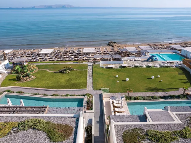 Hotelový komplex sa nachádza v pokojnejšej lokalite pri pláži, neďaleko centra Kokkini Hani a približne 12 km od hlavného mesta Heraklion. V blízkosti sú obchody, reštaurácie a taverny. Medzinárodné letisko Heraklion je vzdialené asi 10 km.