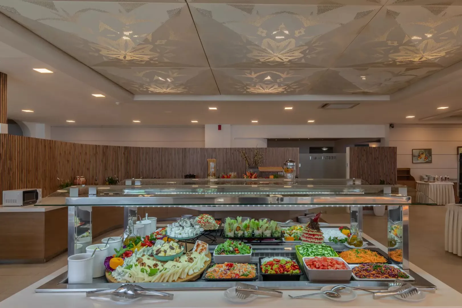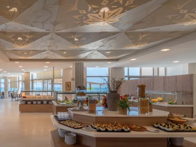 V hoteli sú k dispozícii rôzne stravovacie možnosti vrátane bufetových služieb, ktoré ponúkajú široký výber jedál. Počas pobytu si môžete vychutnať tradičné grécke špeciality, ako aj medzinárodné jedlá.