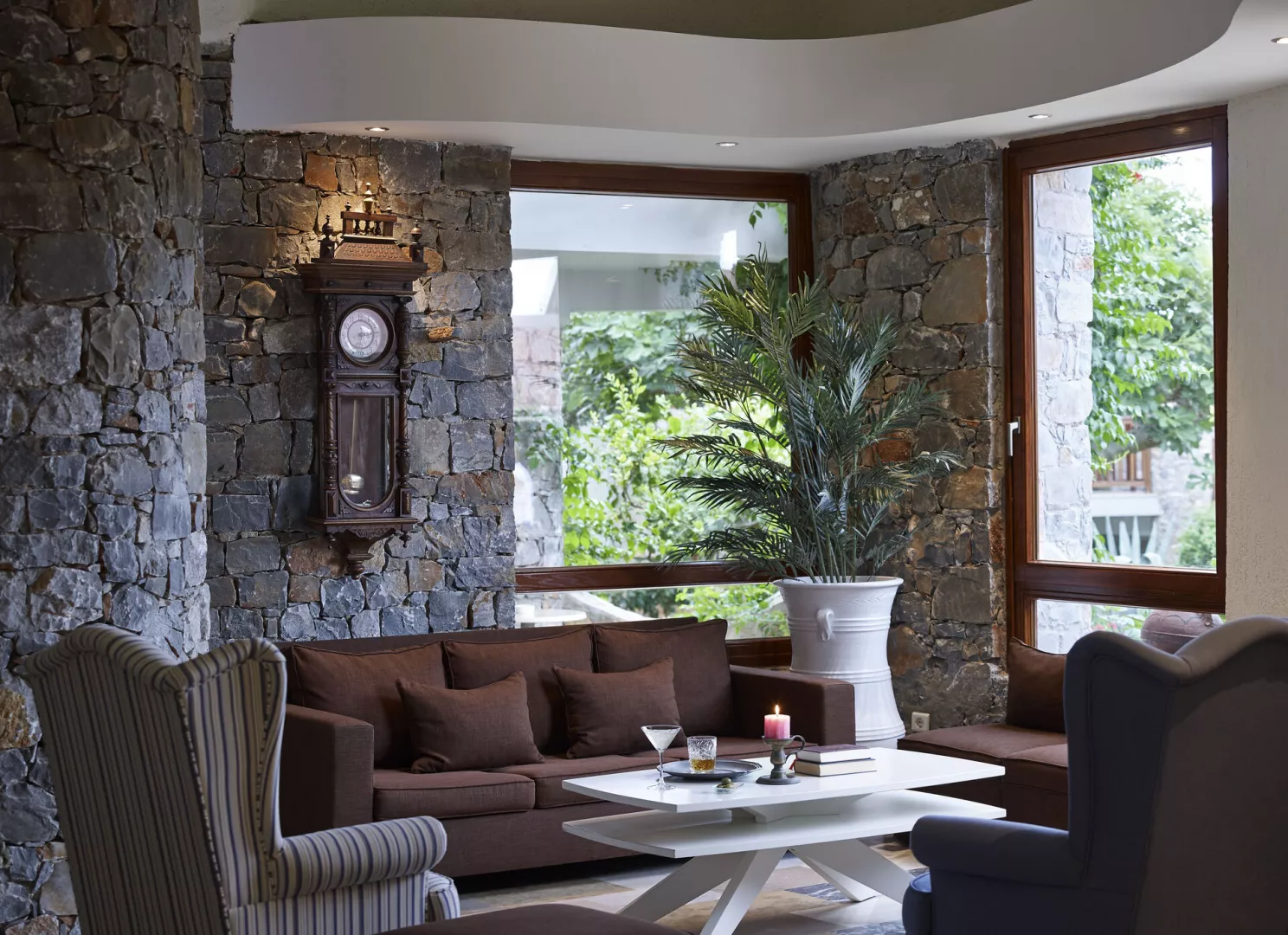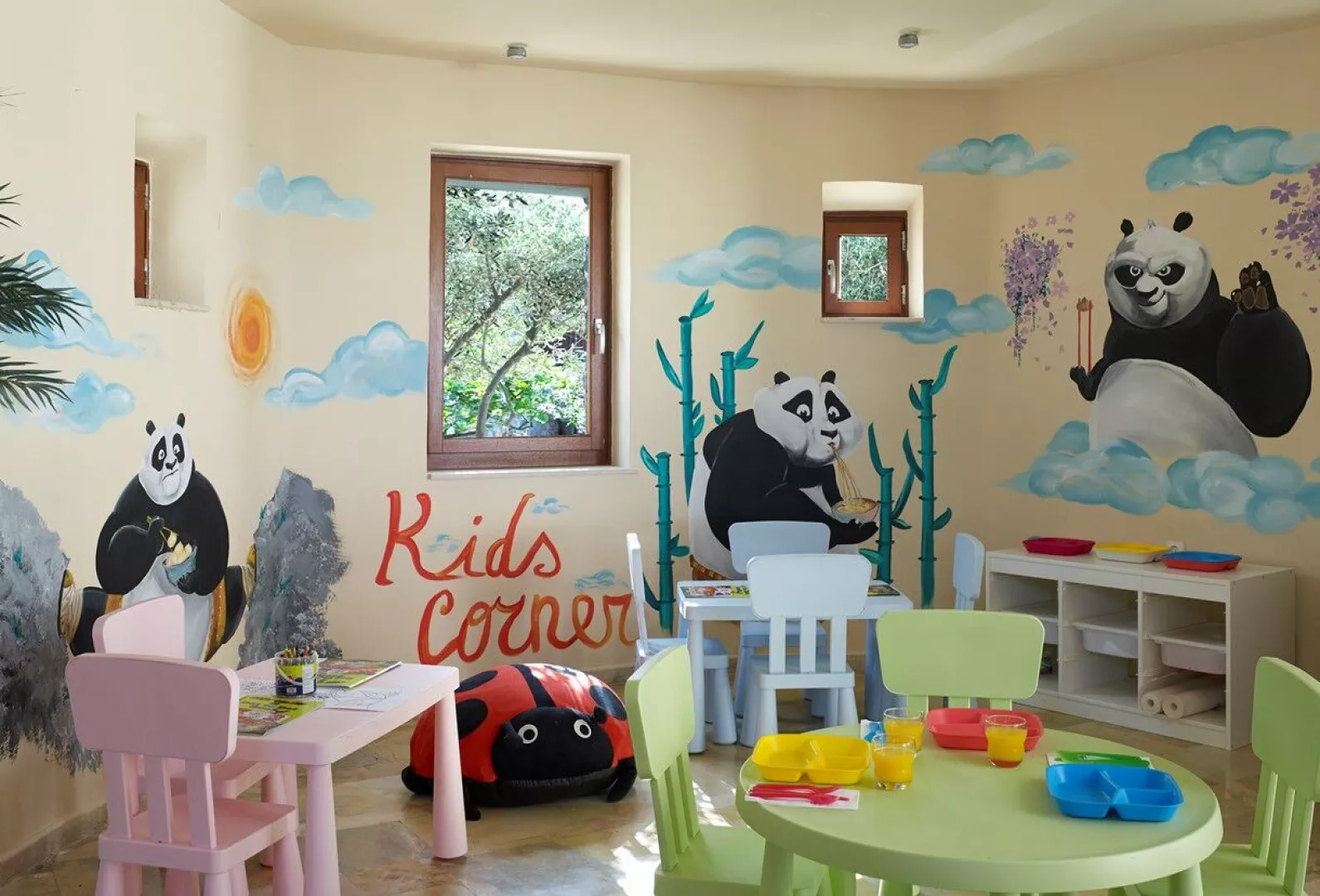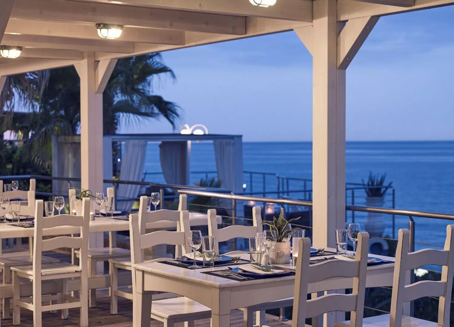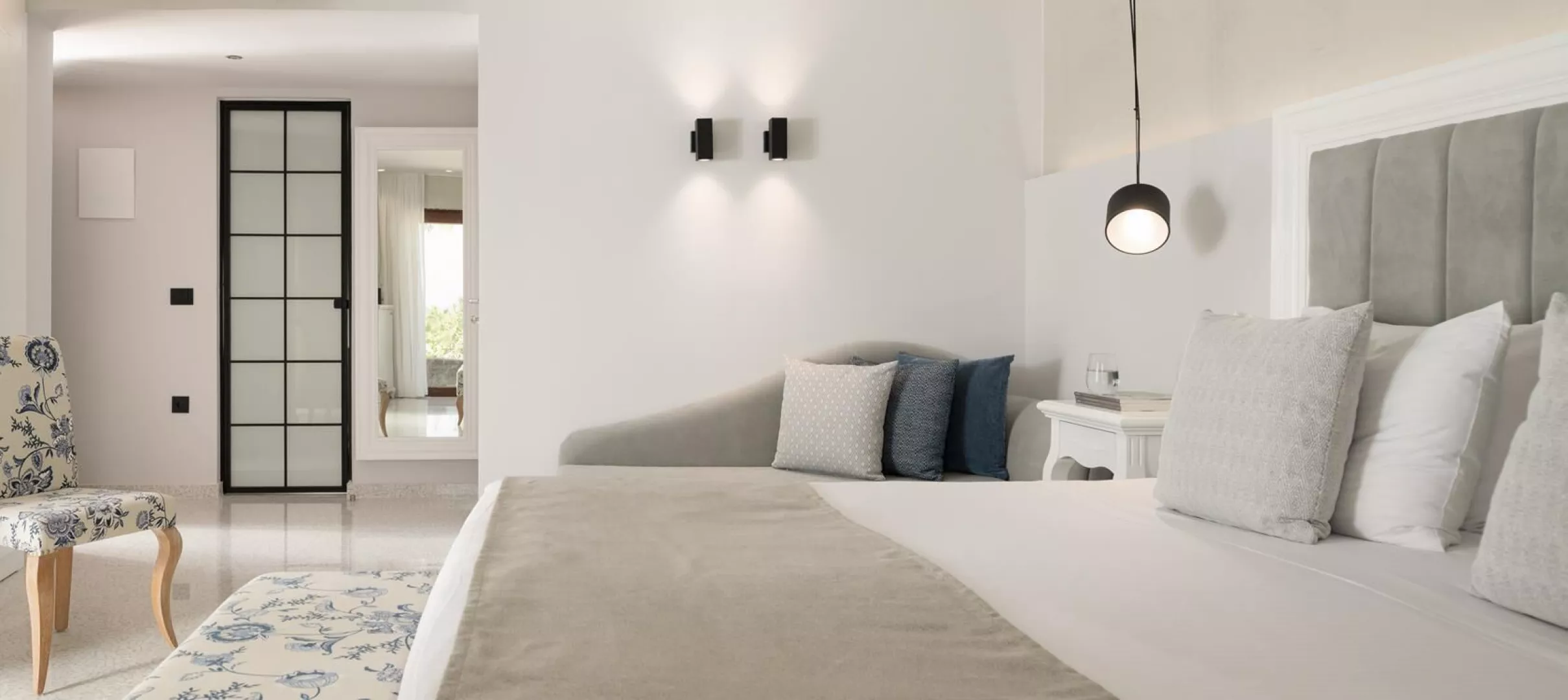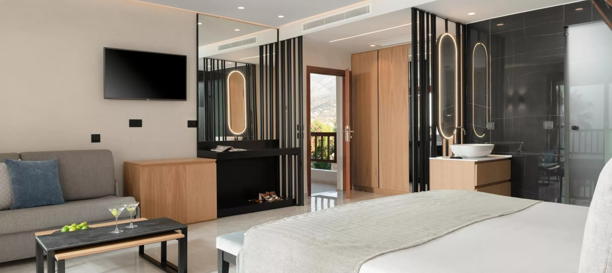 Rôzne varianty izieb majú výhľad do záhrady alebo na more, pričom súkromné bazény a vírivky sú dostupné v niektorých bungalovoch a suitách.