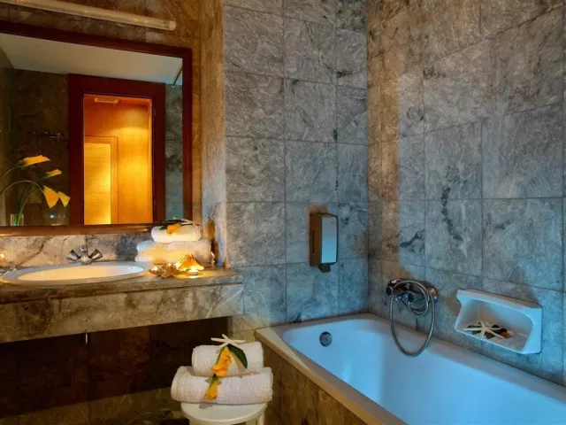 Hotel ponúka rôzne typy izieb, ktoré sú vybavené klimatizáciou, SAT TV, telefónom, chladničkou a kúpeľňou so sušičom vlasov. Niektoré izby majú balkón alebo terasu a ponúkajú výhľad na more alebo do záhrady. Na vyžiadanie je možné zabezpečiť detskú postieľku. Za príplatok je k dispozícii trezor a Wi-Fi.