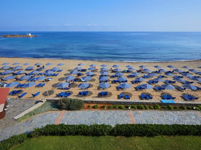 Hotelový komplex s veľmi priateľskou atmosférou sa nachádza priamo pri širokej piesočnatej pláži s pozvoľným vstupom do mora, považovanej za jednu z najkrajších na ostrove Kréta. Areál hotela je obklopený rozľahlou záhradou, kde sú umiestnené 3 bazény a široká ponuka športových aktivít. Do centra letoviska Malia je to len 800 metrov, čo umožňuje príjemné prechádzky. Hotel je ideálny pre tých, ktorí vyhľadávajú aktívnu dovolenku, ako aj pre rodiny s deťmi.