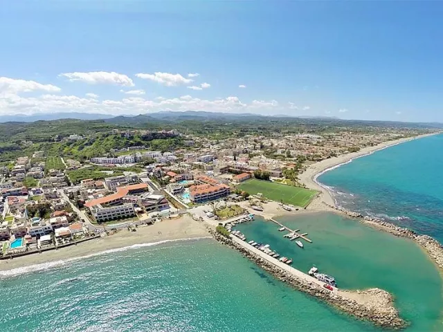 Hotel sa nachádza priamo pri krásnej piesočnatej pláži a len 50 metrov od centra letoviska Platanias, čo zaručuje množstvo možností nákupov, zábavy a nočného života. Starobylé mesto Chania je vzdialené 9 km a letisko v Heraklione 150 km.