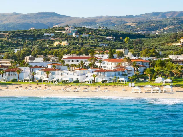Hotel sa nachádza priamo na 300 metrov dlhej pláži v stredisku Rethymno, vzdialenom iba 4 km od historického centra a 75 km od medzinárodného letiska Heraklion.