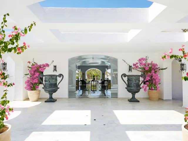 Hotel disponuje 69 izbami (54 suít a 15 viliek), vstupnou halou s recepciou, reštauráciou, dvoma à la carte reštauráciami a dvoma barami (piano bar a bar pri bazéne). K dispozícii je vonkajší bazén s morskou vodou, fitnes, joga, pilates, tenis, plážový volejbal a rôzne animačné programy. Wellness centrum ponúka ajurvédu, masáže a kozmetické ošetrenia (za poplatok).