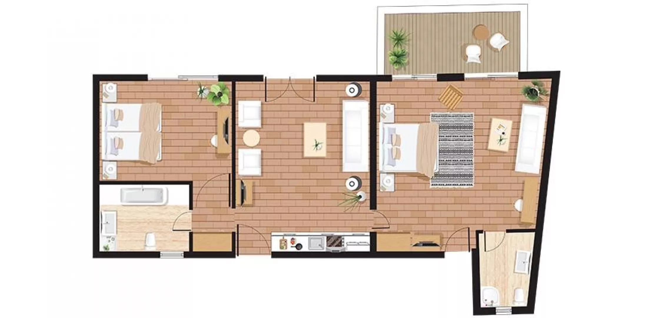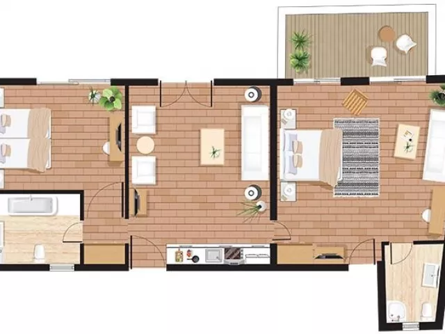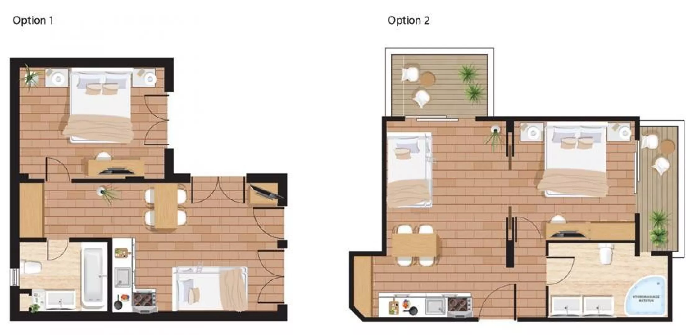 Izby sú klimatizované a vybavené Wi-Fi pripojením, LED LCD TV, kúpeľňou s WC, sušičom vlasov, trezorom, telefónom, chladničkou a modernou kuchynkou. Každá izba má balkón alebo terasu. Dostupné typy izieb zahŕňajú: