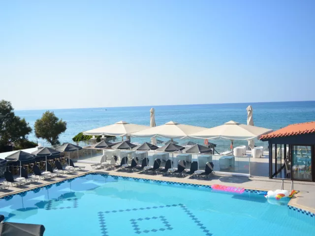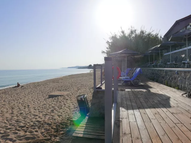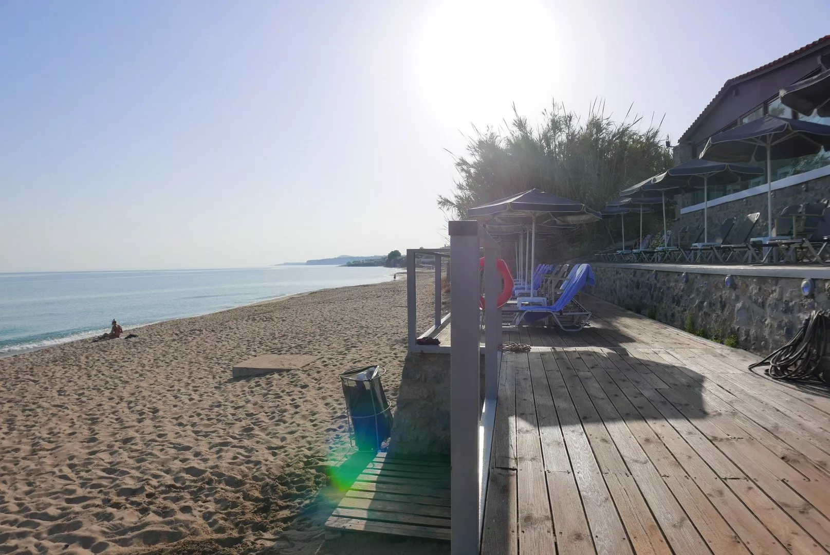 Piesočnatá pláž s náročnejším vstupom do mora je vzdialená asi 100 m od hotela. Morské dno je miestami kamenité, preto je odporúčaná obuv do vody. Ležadlá a slnečníky na hotelovej časti pláže sú k dispozícii bezplatne. Plážové osušky sa dajú zapožičať za depozit.