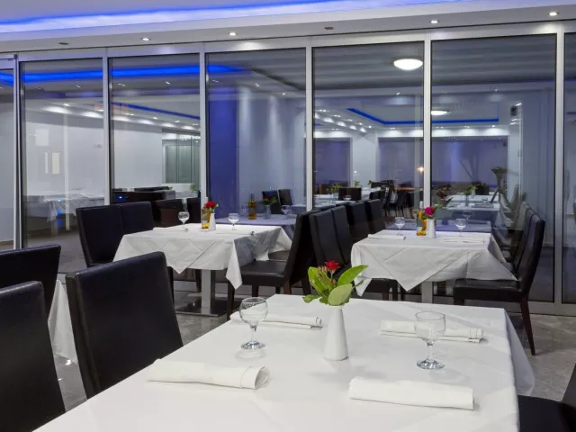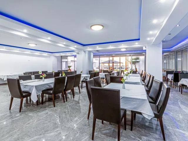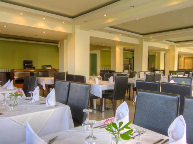 All inclusive sa skladá zo raňajok (07:30-10:00), obedov (12:00 - 14:30) a večerí (19:00 - 21:00) formou bufetu. Počas dňa sú k dispozícii ľahké občerstvenie, snack a zmrzlina. Miestne alkoholické a nealkoholické nápoje sú k dispozícii v určených časoch (10:00 - 22:00). Á la carte reštaurácia vedľa hotela ponúka jednu bezplatnú návštevu za pobyt.