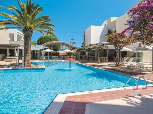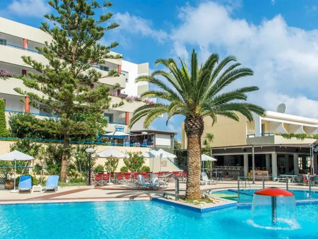 Hotel ponúka vstupnú halu s recepciou, miestnosť na úschovu batožiny a bezplatné wifi pripojenie. Jeho súčasťou je hlavná reštaurácia, kde si môžete vychutnať pestrý výber jedál miestnej a medzinárodnej kuchyne. Vzadu sa nachádzajú dva veľké bazény a dva bazény pre deti, obklopené krásnou hotelovou záhradou plnou kvetov. K dispozícii sú slnečníky a ležadlá pri bazénoch zdarma, ako aj špeciálny bazén so šmykľavkami pre deti. Na území hotela sú aj dva pool bary, hotelový market a ihrisko pre deti. Pre tých, ktorí sa chcú preskúmať okolie, je k dispozícii požičovňa bicyklov za poplatok.