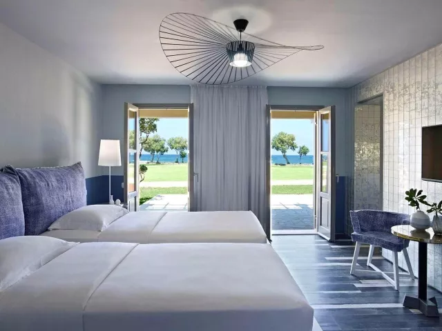 Dvojlôžkové izby a bungalovy ponúkajú rôzne výhľady, kúpeľne s fénom, minibar (za poplatok), trezor, TV/sat., telefón a balkón alebo terasu. K dispozícii sú aj priestrannejšie izby s výhľadom na more, ako aj rodinné suity s obývacou časťou a rôznymi rozmermi podľa typu izby.