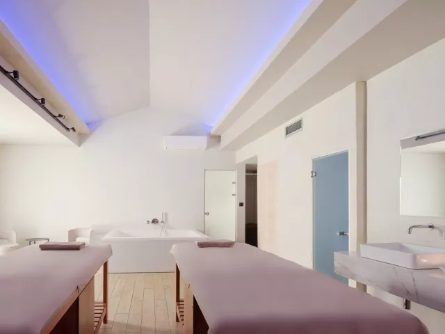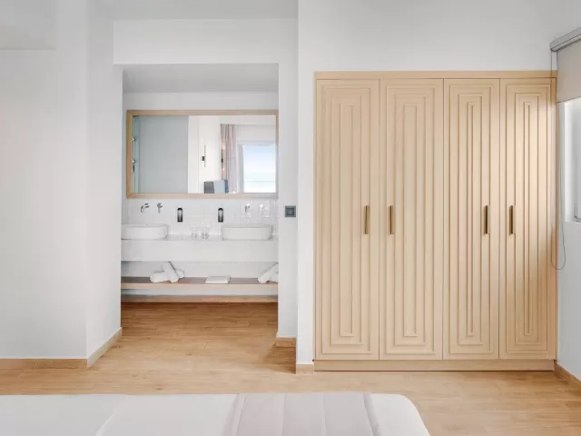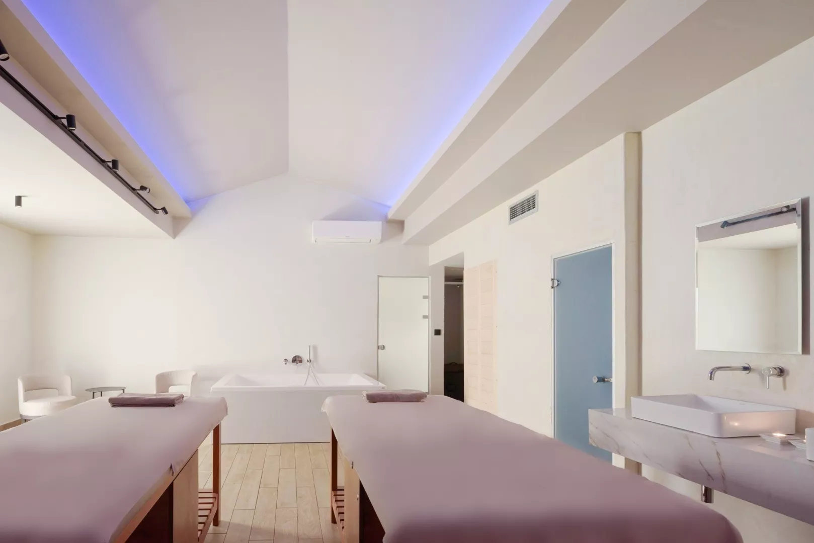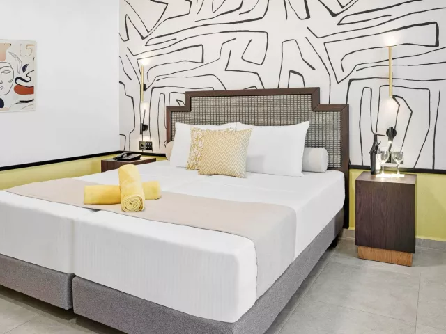 Dvojlôžková izba, Výhľad záhrada: kúpeľňa/WC (sušič vlasov), klimatizácia (1.6.-30.9.), telefón, TV/sat., trezor, set na prípravu kávy a čaju, minichladnička, balkón alebo terasa. Ostatné typy izieb (pokiaľ nie je uvedené inak, majú izby vyššie uvedené vybavenie) Dvojlôžková izba, Bočný výhľad mora: čiastočný výhľad na more. Dvojlôžková izba, Výhľad mora: priamy výhľad na more. Dvojlôžková izba, Superior, Súkromný bazén: novšie izby, súkromný bazén