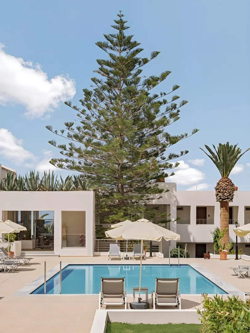 Na pokojnom mieste v oblasti Skaleta, cca 12 km od centra Rethymna (pravidelné spojenie linkovým autobusom, zastávka priamo pri hoteli).