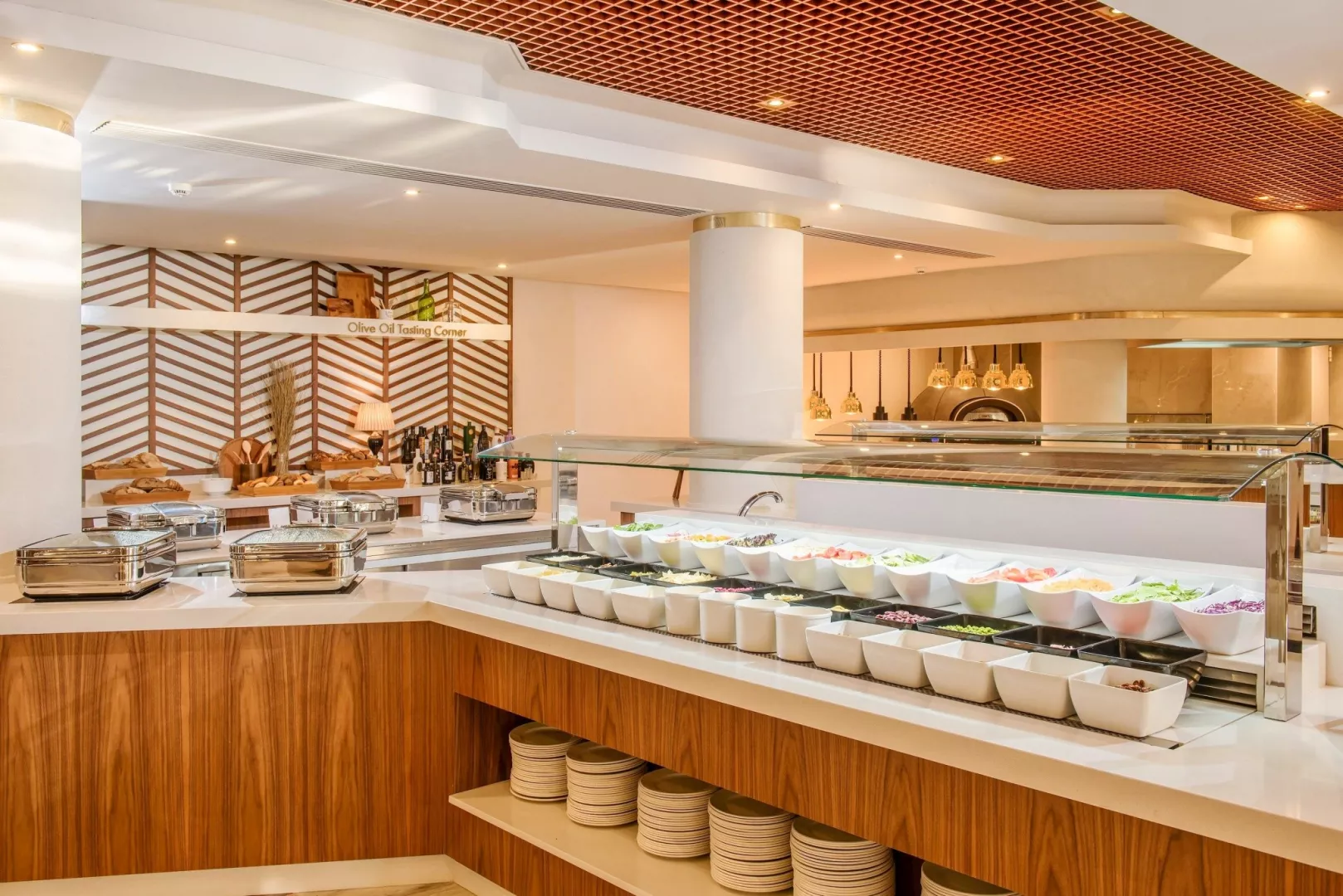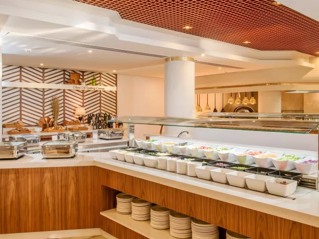 Polpenzia: Raňajky a večere formou bufetu. All Inclusive: Raňajky 7.15-10.15, obed 12.30-15.00 a večera 19.00-21.30 formou bufetu Nealkoholické nápoje, čaj, káva, alkoholické nápoje miestnej výroby v bare pri bazéne (10.00–24.00 hod.) av hlavnom bare (18.00–24.00 hod.) Popoludňajšia desiata, čaj a káva 16.00-17.00, zmrzlina 10.00-18.00