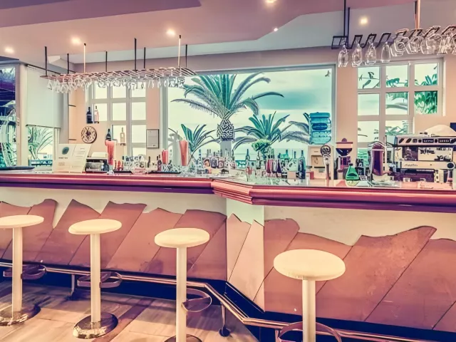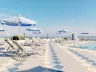 Hotel priamo pri piesočnatej pláži, ležadlá, slnečníky a plážové osušky zadarmo, bar na pláži.