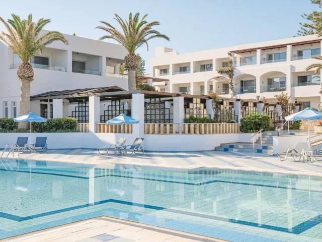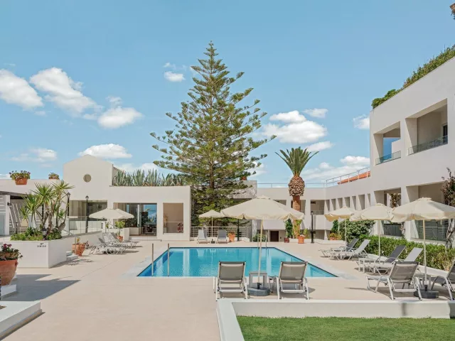 120 izieb, vstupná hala s recepciou, hlavná reštaurácia, taverna, minimarket a obchod so suvenírmi vo vedľajšom hoteli Creta Star, bar. V záhrade bazén, ležadlá a slnečníky a osušky zadarmo, bar pri bazéne.