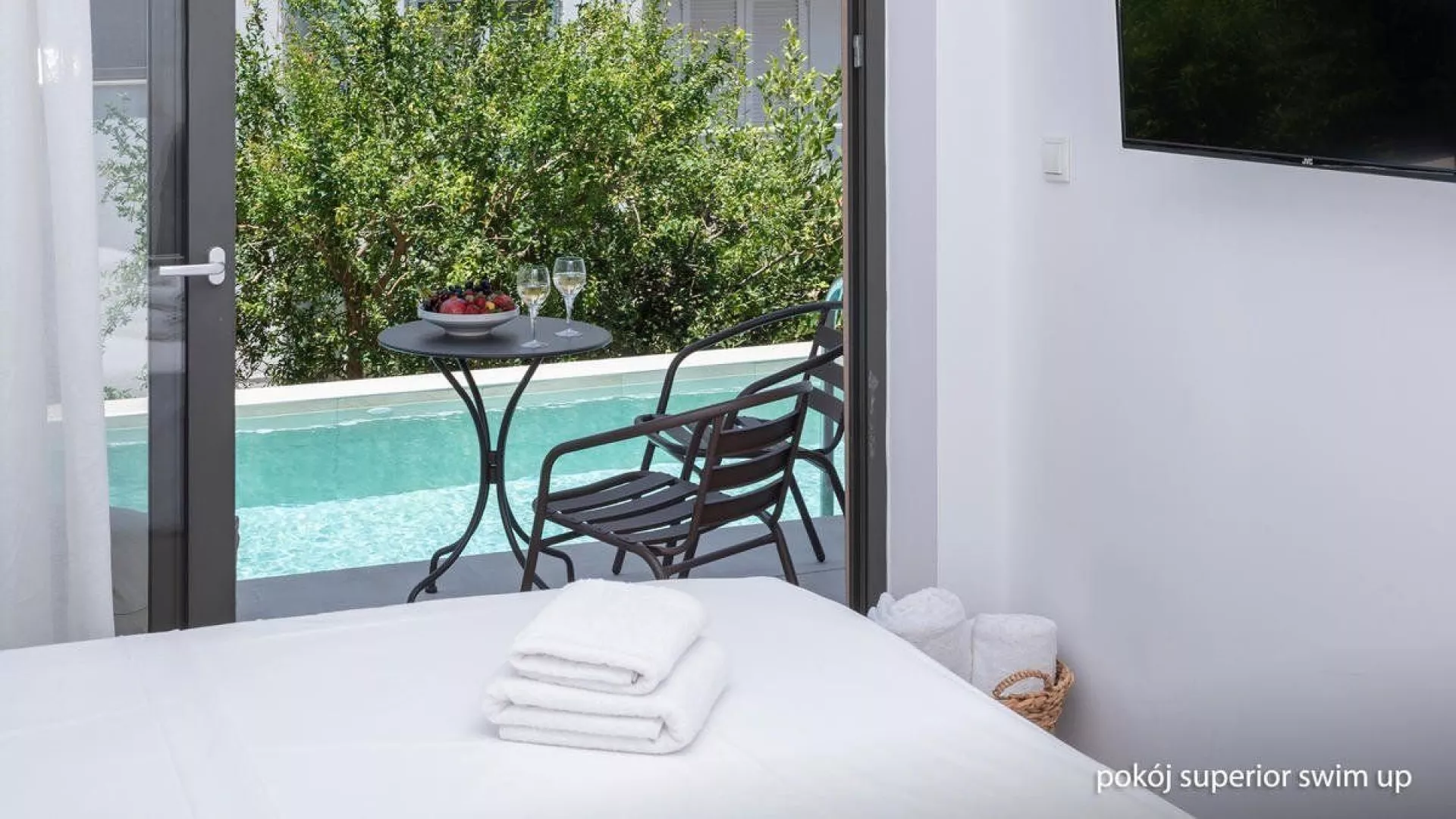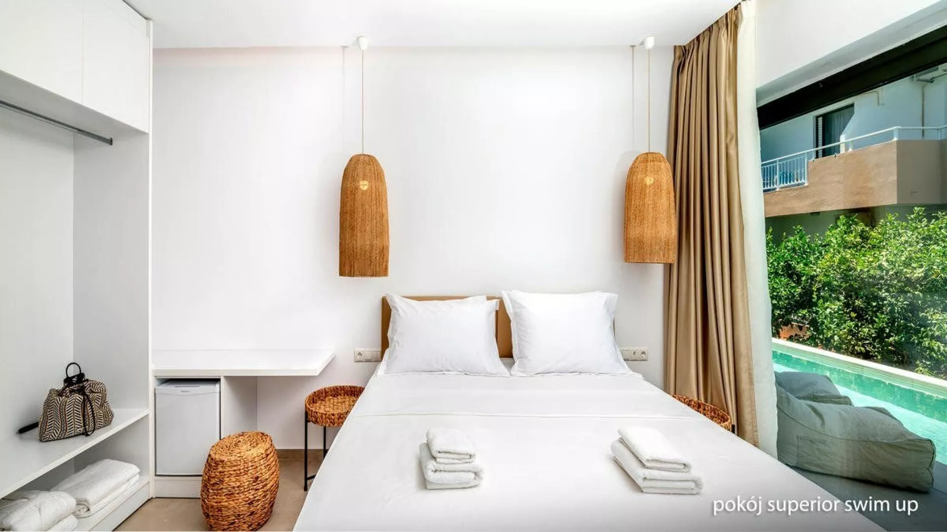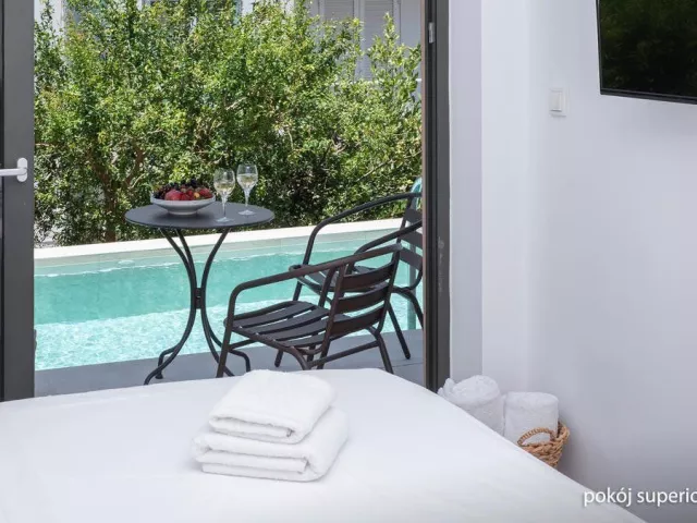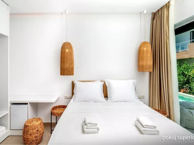 Dvojlôžkové izby sú vybavené vlastným sociálnym zariadením (kúpeľňa, WC, sprcha, fén), SAT/TV, klimatizáciou, minibarom, setom na prípravu kávy/čaje a trezorom. Izby majú terasu alebo balkón. Za príplatok sú k dispozícii izby s priamym vstupom do spoločného bazénu.