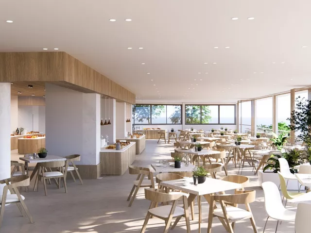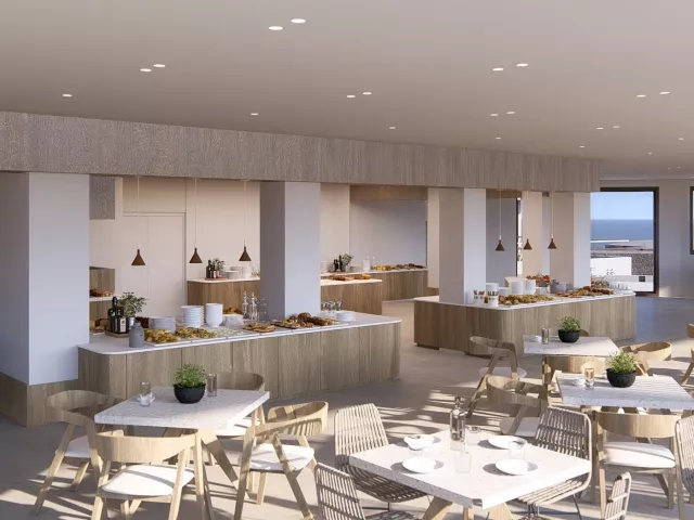 Hotel ponúka vstupnú halu, recepciu, výťah v hlavnej budove, hlavnú reštauráciu, lobby bar, snack bar pri bazéne, TV kútik, minimarket a terasu. Bezplatné Wi-Fi je dostupné v lobby. K dispozícii je bazén so slanou vodou a detský bazénik, ako aj vodný park so šmykľavkami. Lehátka a slnečníky pri bazénoch sú bez poplatku, uteráky za poplatok.