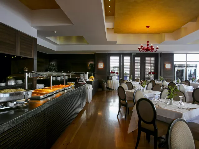 V hoteli sa servírujú raňajky formou bufetu. Polpenzia zahŕňa raňajky a večere tiež formou bufetu.