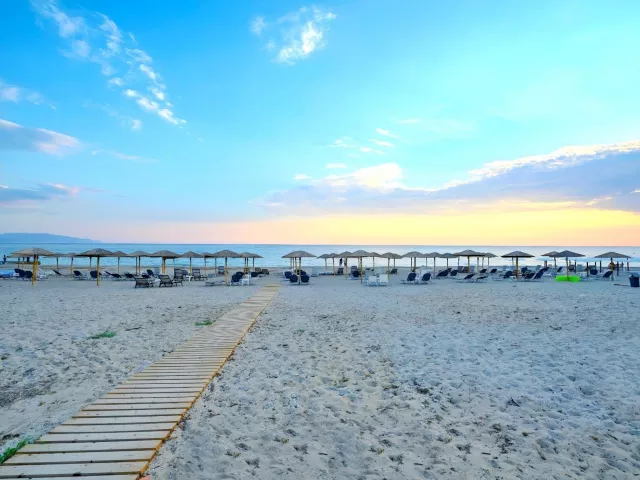 Priamo pri hoteli sa rozprestiera dlhá piesočnato-kamienková pláž (ležadlá a slnečníky za poplatok). V oblasti vstupu do mora sú miestami kamenné pláty, preto sa odporúča obuv do vody. Plážové osušky sú k dispozícii za zálohu.