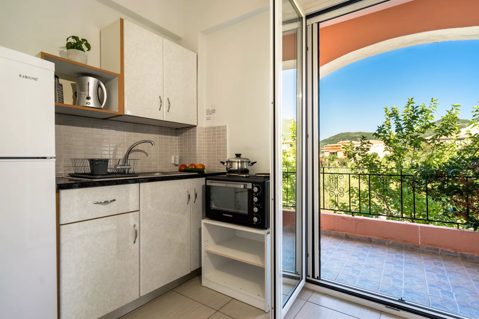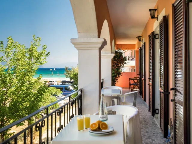 Štúdio: kúpeľňa so sprchou a WC vybavený kuchynský kút (varič, základné kuchynské vybavenie), rýchlovarná kanvica, sendvičovač sušič na vlasy a žehlička na vyžiadanie chladnička klimatizácia (zadarmo) Wi-Fi (zadarmo) trezor (za poplatok) detská postieľka je na vyžiadanie (zadarmo) priestranné a zatienené balkóny alebo terasy s bočným výhľadom na more vešiak na bielizeň na balkónoch/terasách Ostatné typy izieb (pokiaľ nie je uvedené inak, majú izby vyššie uvedené vybavenie) Apartmán: 2 miestnosti, navyše samostatná spálňa