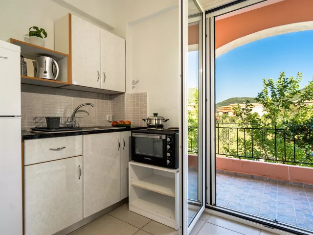 Apartmánový komplex sa nachádza v tesnej blízkosti kamienkovej pláže, asi 150 m od obchodov a taverien v mestečku Vassiliki a asi 20 minút od centra mesta Vassiliki.