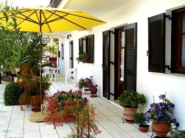 Štúdiá sa nachádzajú na svahu v pokojnejšej časti letoviska Vassiliki, obklopené malou upravenou záhradou. Len 2 minúty chôdze od pobrežnej promenády, ktorá ponúka obchody, reštaurácie a kaviarne, a 3 minúty chôdze od centrálnej pláže. Ubytovanie je vhodné pre tých, ktorí si radi varia sami, ako aj pre tých, ktorí chcú mať blízko zábavu.