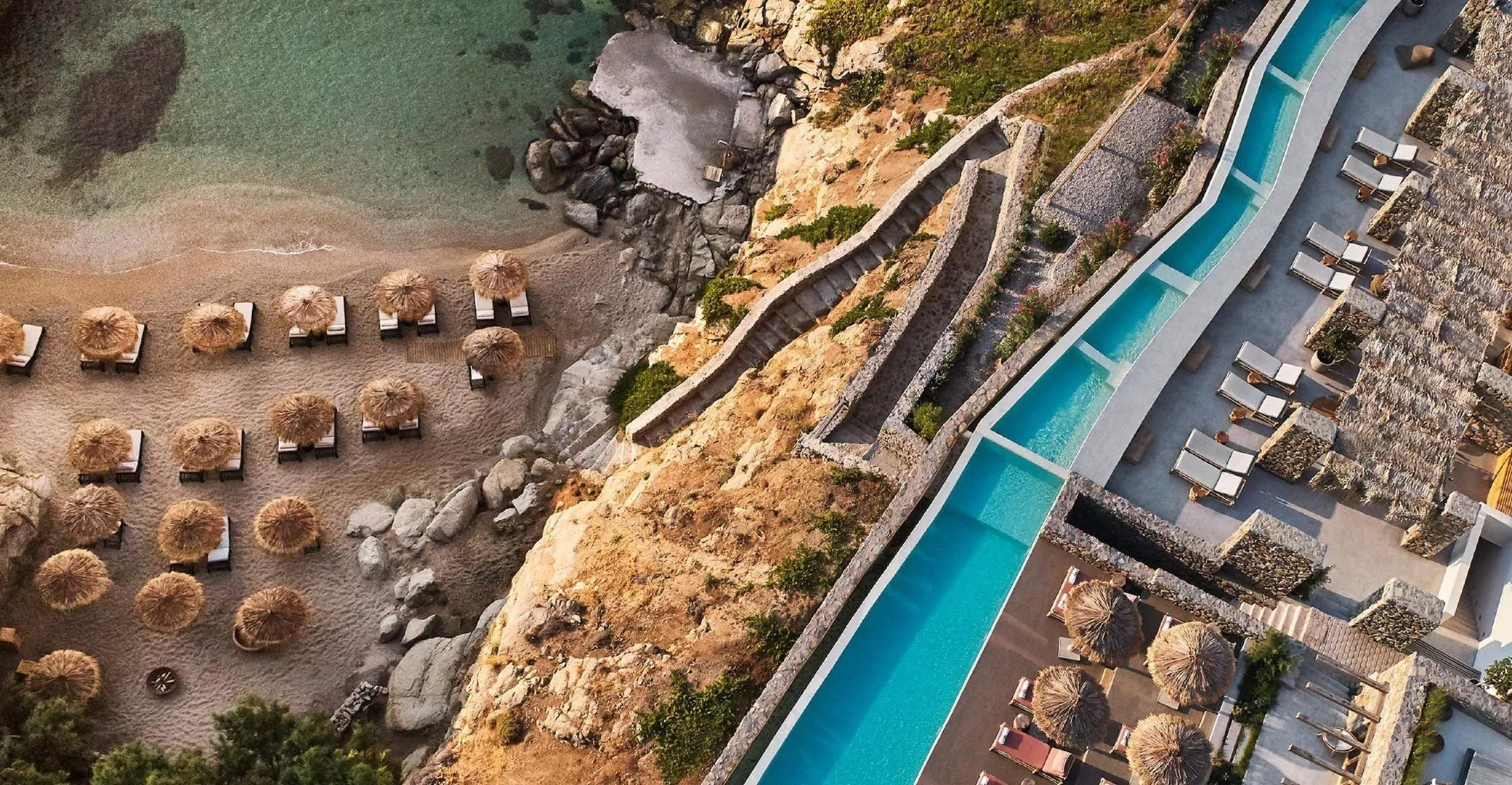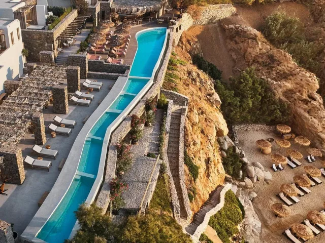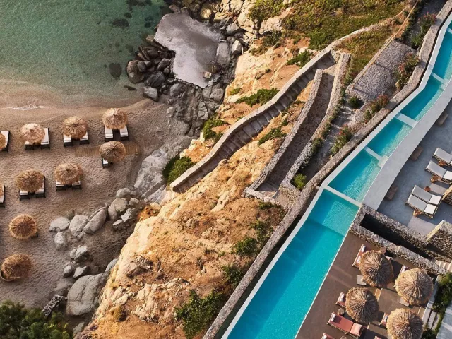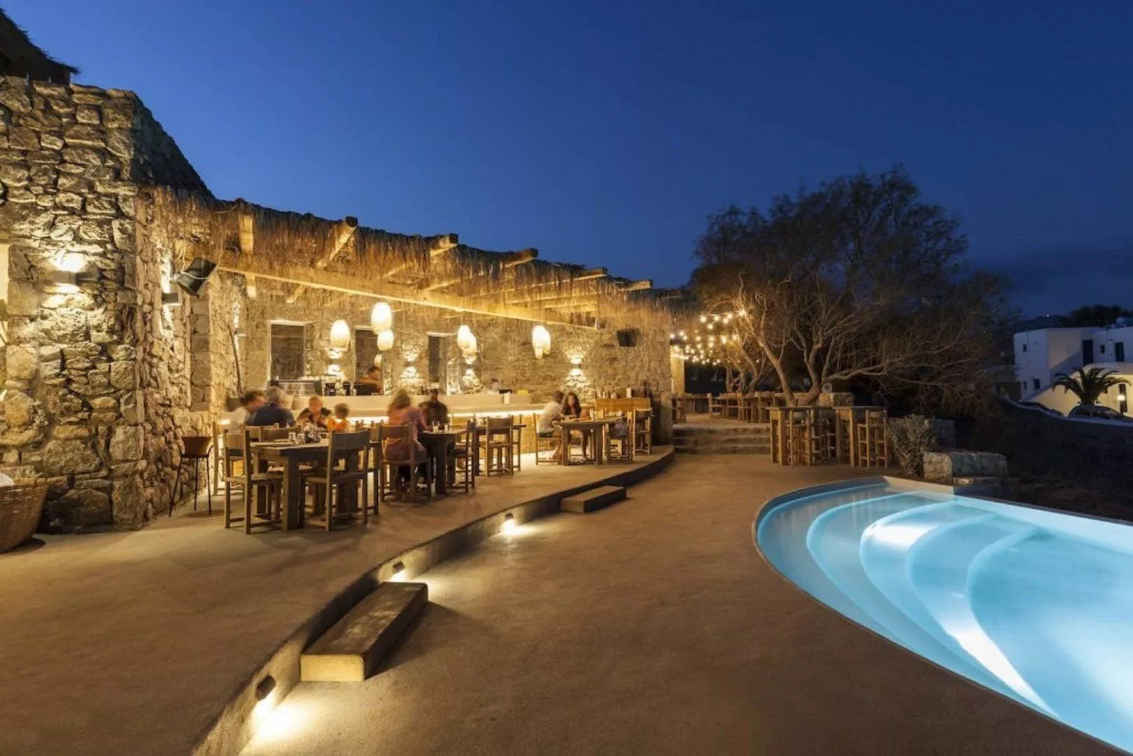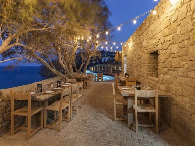 Hotel sa nachádza v kľudnom prostredí v blízkosti pláže. Reštaurácie, bary a požičovne áut sú v pešej vzdialenosti, zatiaľ čo dedina Ano Mera je vzdialená cca 4 km. Centrum mesta Mykonos a letisko sú cca 10 km od hotela.