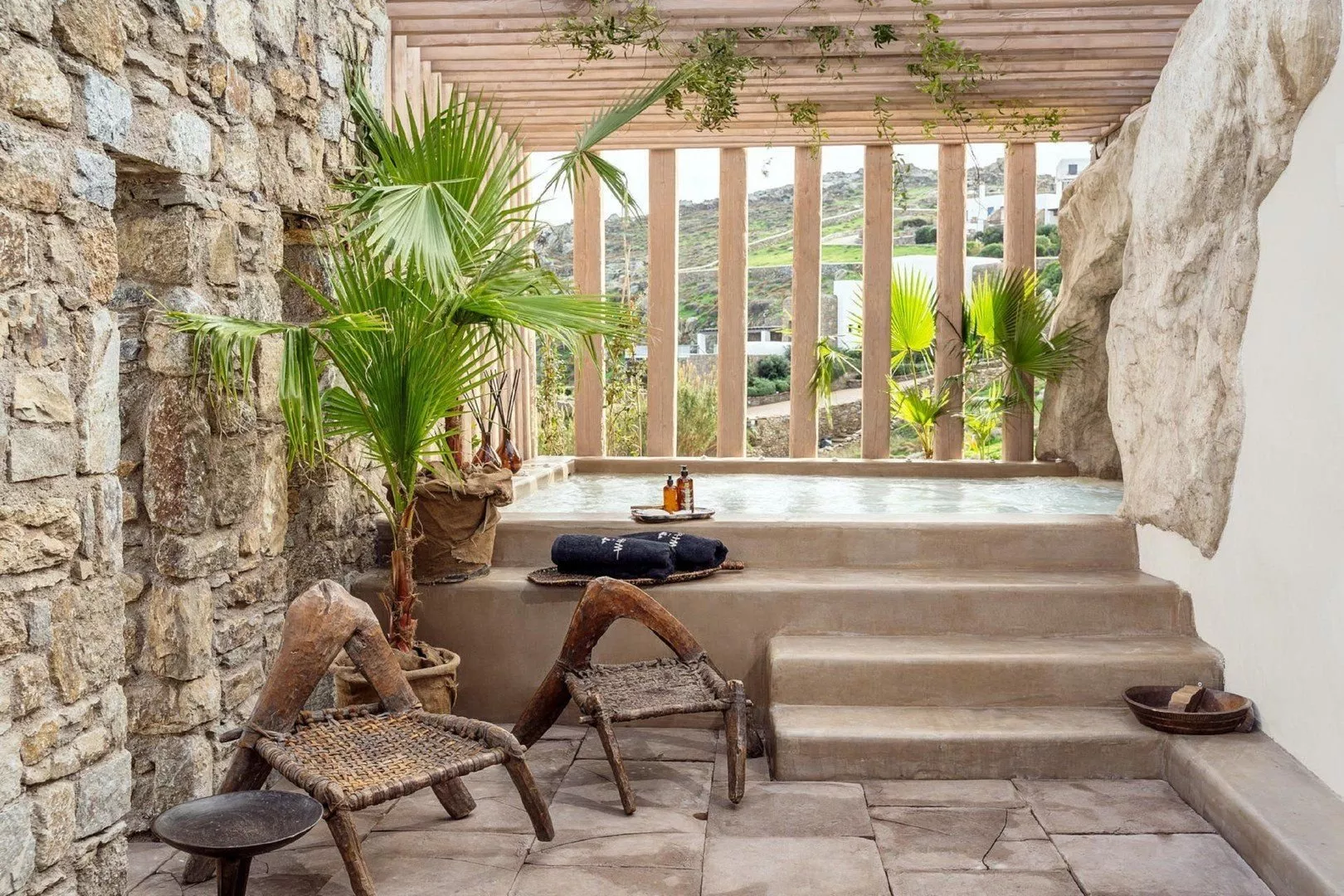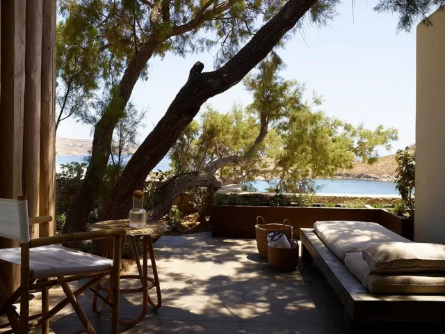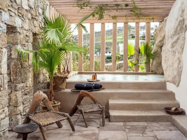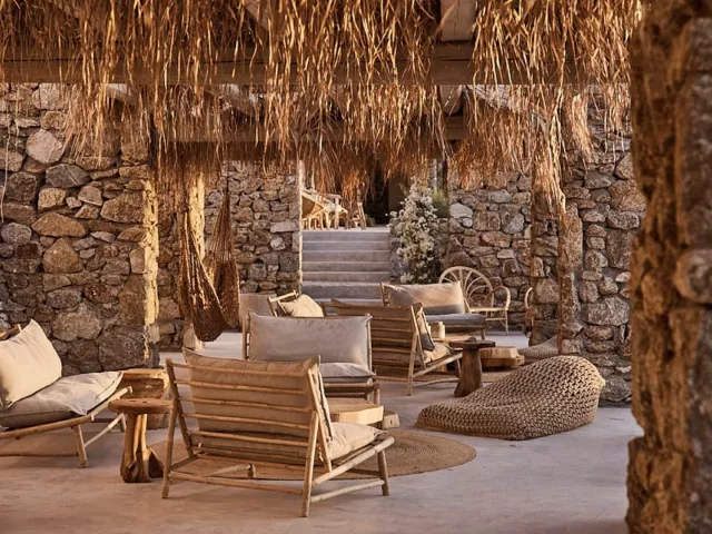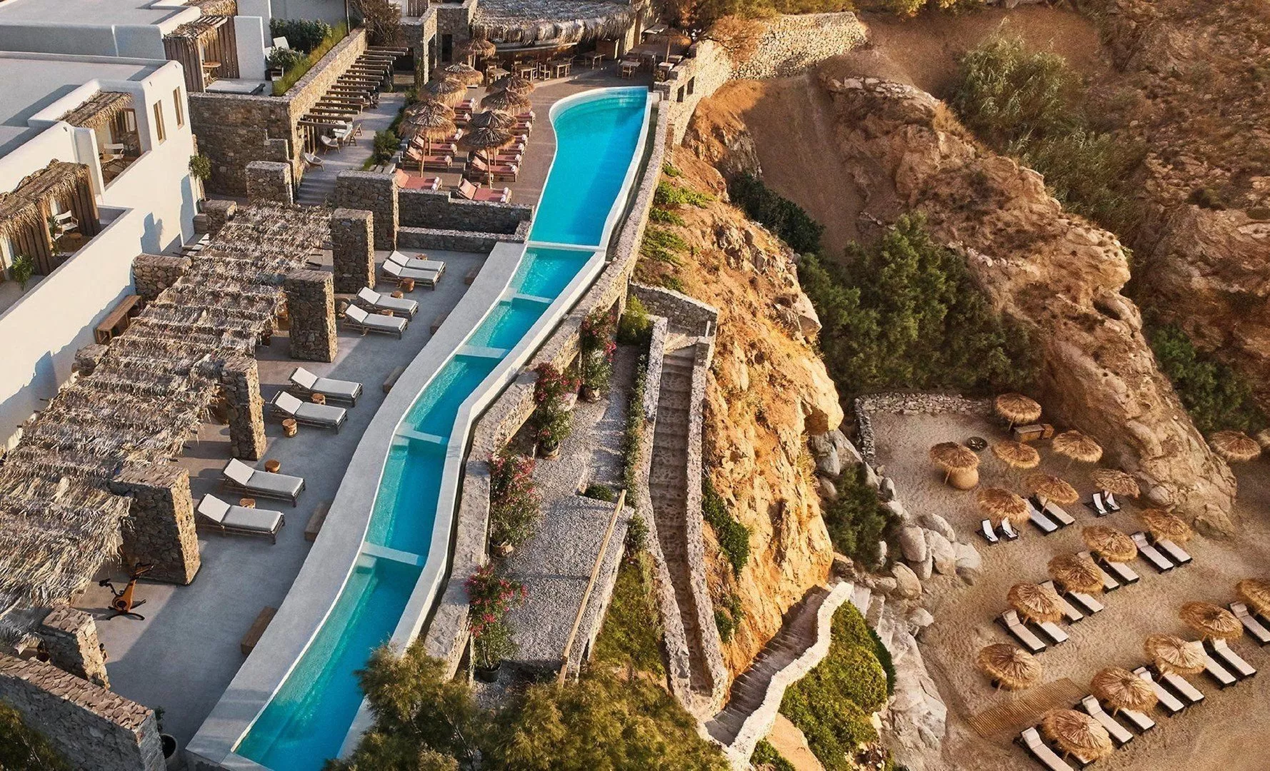 Hotel sa nachádza v kľudnom prostredí v blízkosti pláže. Reštaurácie, bary a požičovne áut sú v pešej vzdialenosti, zatiaľ čo dedina Ano Mera je vzdialená cca 4 km. Centrum mesta Mykonos a letisko sú cca 10 km od hotela.