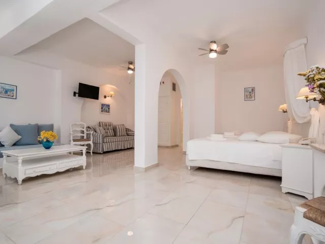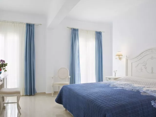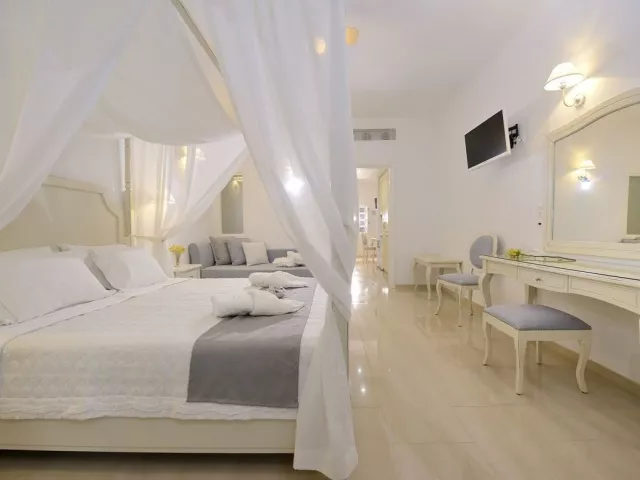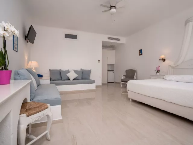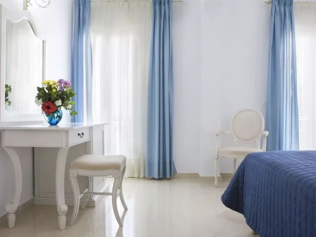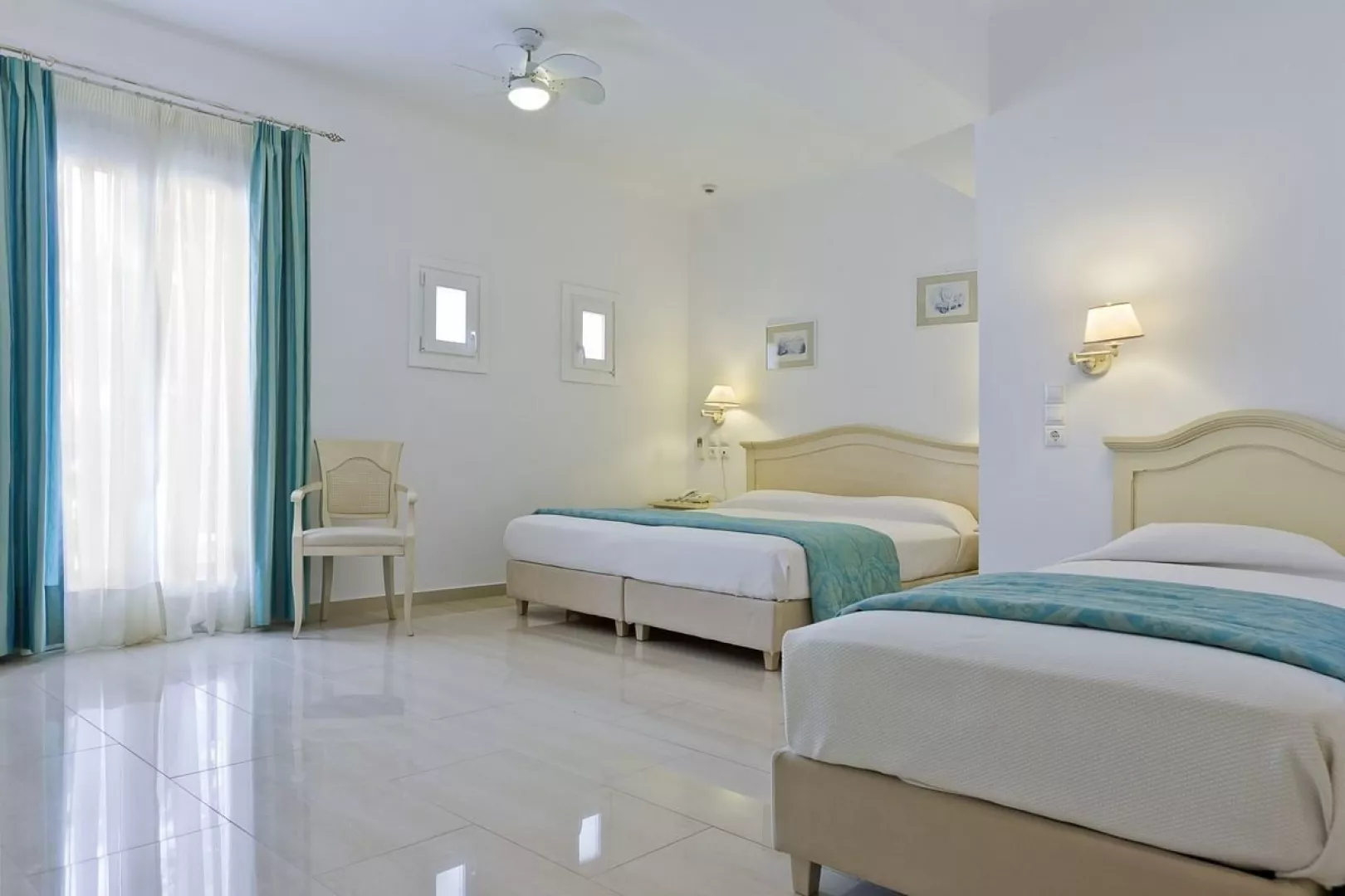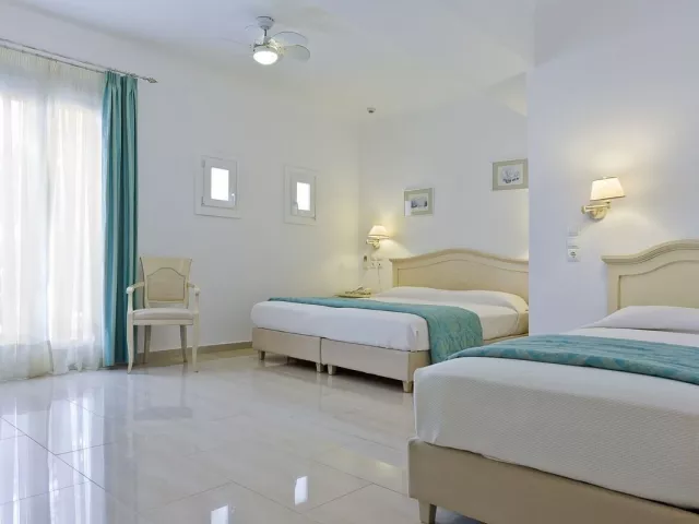 Izba superior pre 2 osoby má plochu cca 19-23 m², je vybavená manželskou posteľou alebo dvoma samostatnými lôžkami, TV/sat., klimatizáciou, kúpeľňou s WC, vaňou alebo sprchou, fénom a balkónom alebo terasou s posedením. Rodinný suite má plochu cca 36 - 48 m² a pozostáva z jedného pokoja s manželskou posteľou alebo dvoma samostatnými lôžkami a dvoma rozkladacími pohovkami, chladničkou, minibarom, žehličkou s doskou, telefónom, trezorom a verandou s výhľadom do záhrady a na bazén. Junior suite má plochu cca 36 m² a rovnaké vybavenie ako rodinný suite. Superior suite má plochu cca 45 - 50 m² s rovnakým vybavením ako rodinný suite. K dispozícii sú plážové uteráky.