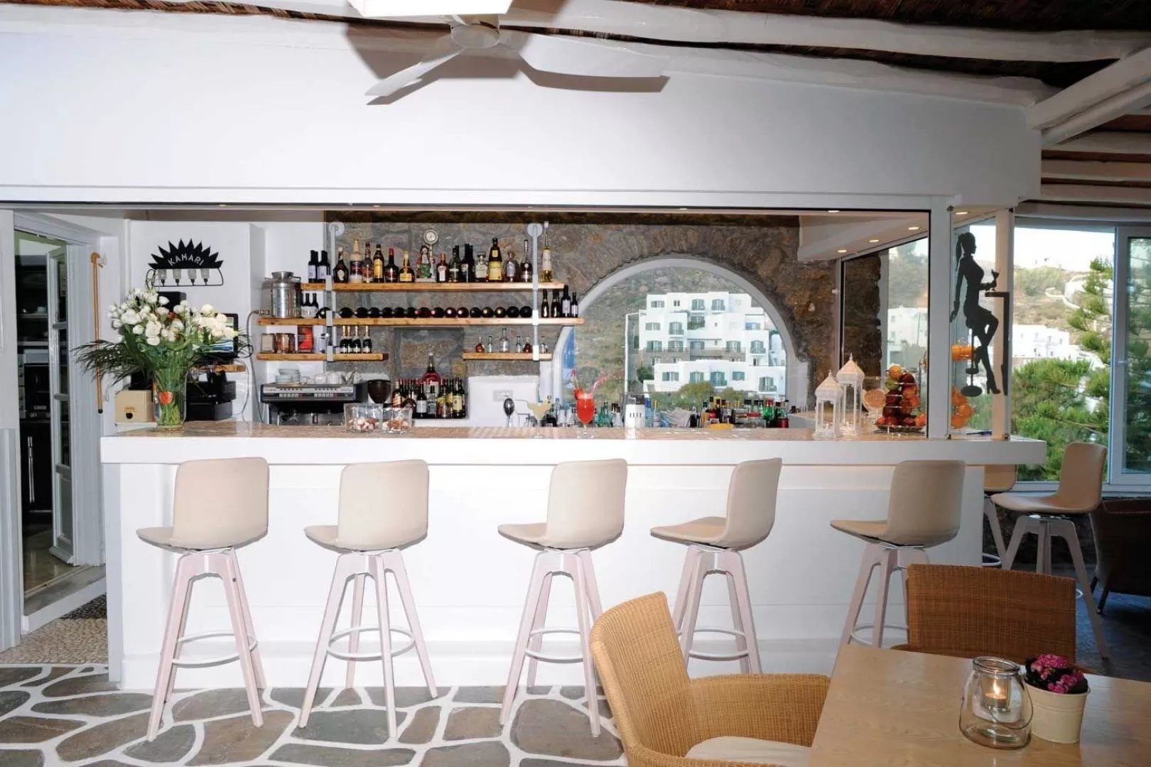 Kamari Hotel Mykonos je vzdialený približne 200 m od verejnej piesočnatej pláže „Platys Gialos“. Na pláži sú k dispozícii slnečníky a ležadlá (za poplatok), a mesto Mykonos je neďaleko, len 4 km. Letisko (JMK) sa nachádza približne 3 km od hotela.