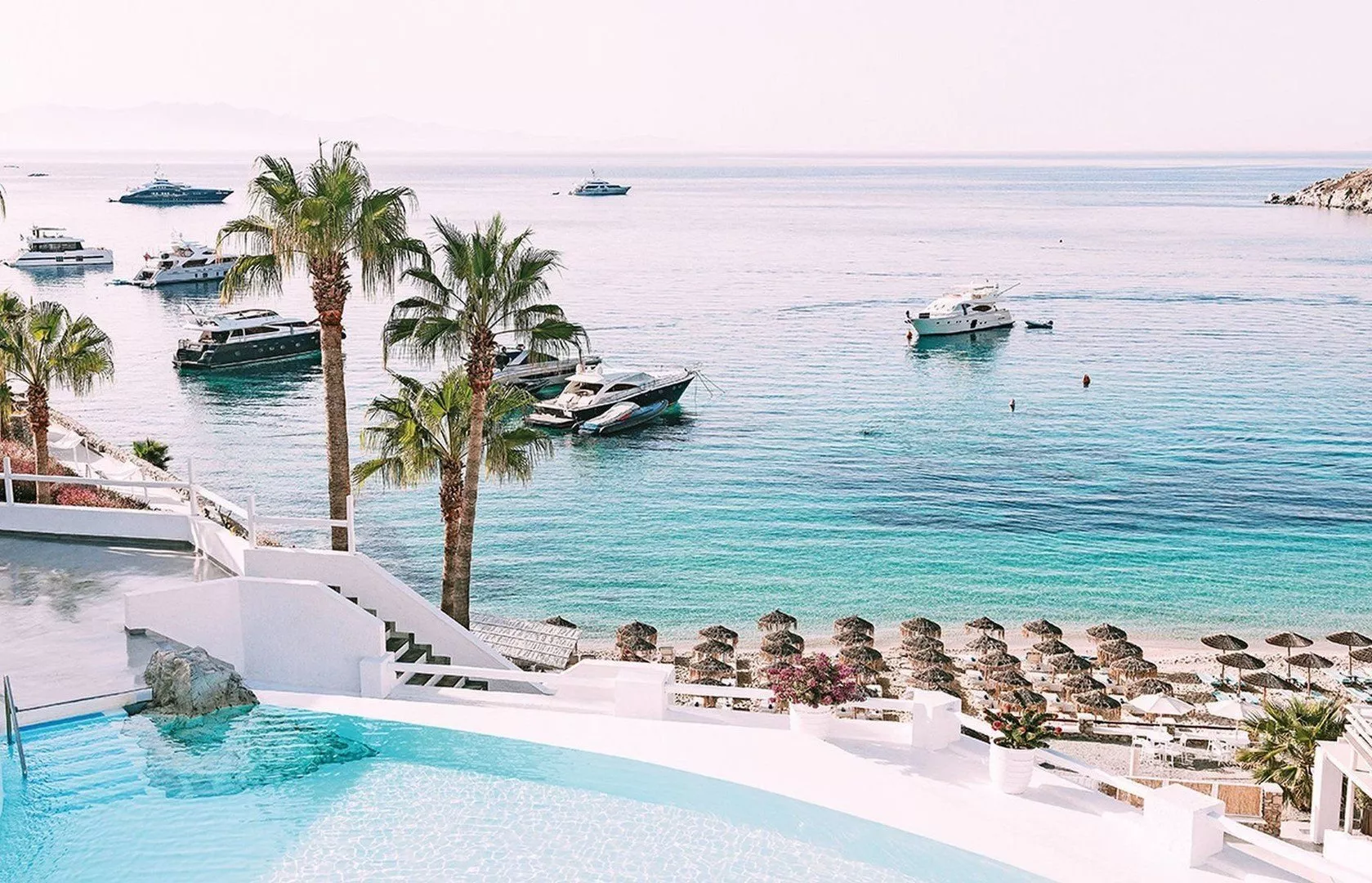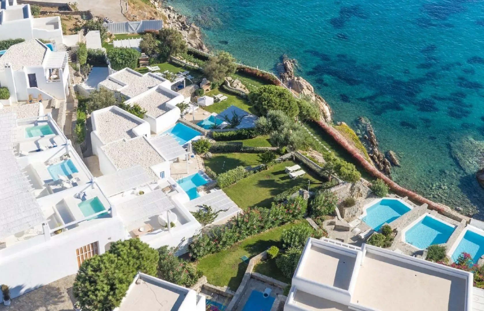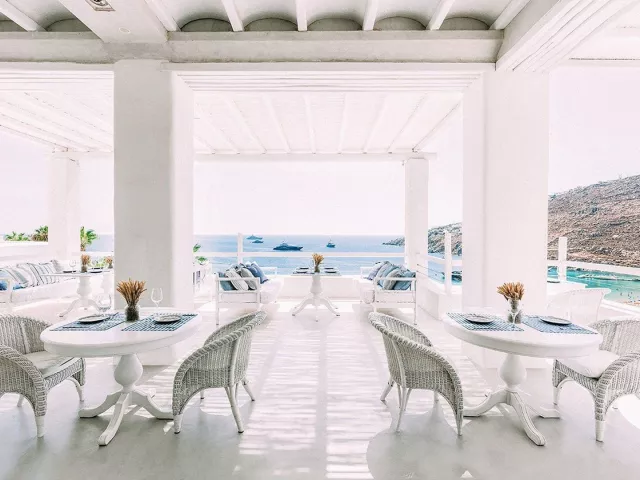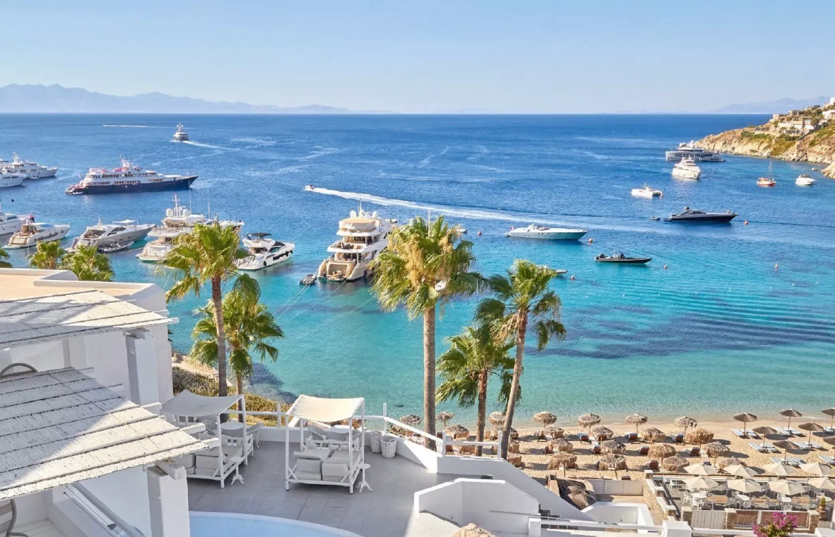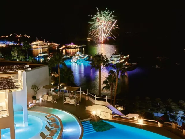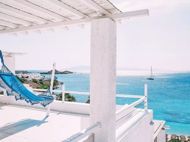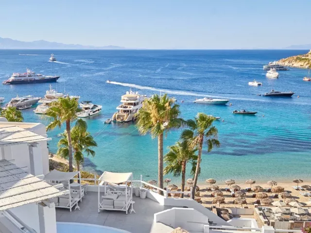 Hotel sa nachádza na juhozápade ostrova, priamo pri mori. V blízkosti hotela sú supermarkety, reštaurácie, bary a ďalšie nákupné možnosti. Vetrné mlyny a centrum mesta Mykonos sú vzdialené približne 4 km, letište je asi 3,5 km ďaleko.