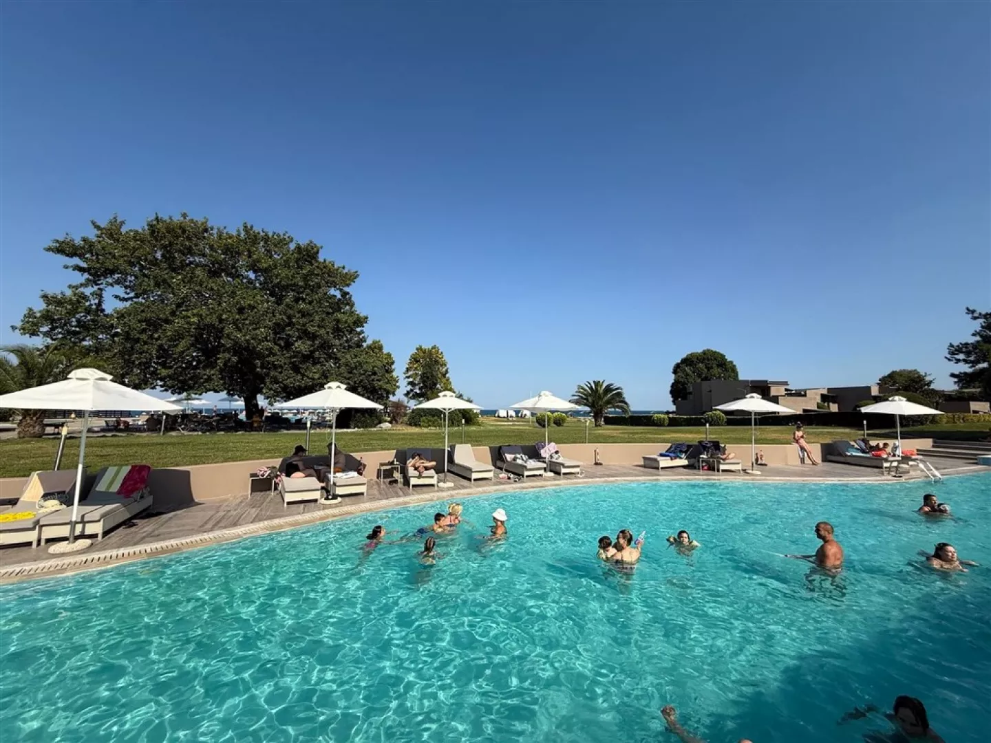 Na úpätí mýtického Olymposu, tam, kde sa hory jemne stretávajú s tyrkysovým morom, sa rozprestiera Dion Palace Resort & Spa – elegantný päťhviezdičkový hotel, ktorý spája grécku pohostinnosť s moderným komfortom. Hotel leží priamo pri širokej pláži priezračného Egejského mora, kde ranné slnko pozýva k pokojnému plávaniu a večerné západy farbia obzor do zlatých tónov.