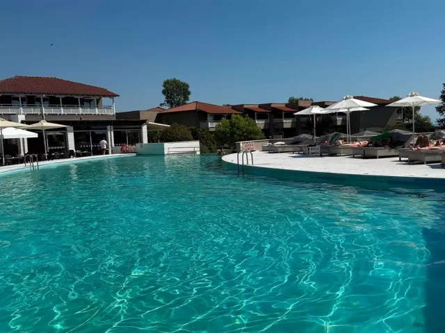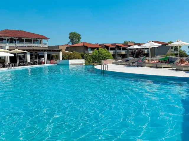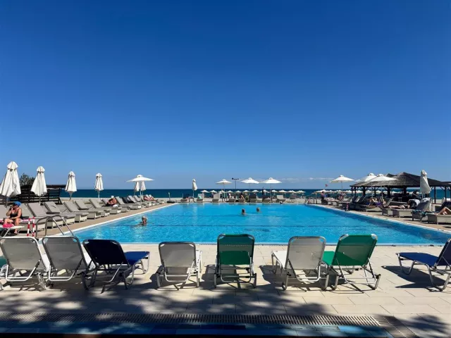 Areál hotela sa nachádza na piesočnato-kamienkovej pláži s pozvoľným vstupom do mora, približne 8 km od mestečka Litochoro a 15 km od Katerini. Letisko v Solúne (Thessaloniki) je vzdialené približne 100 km.