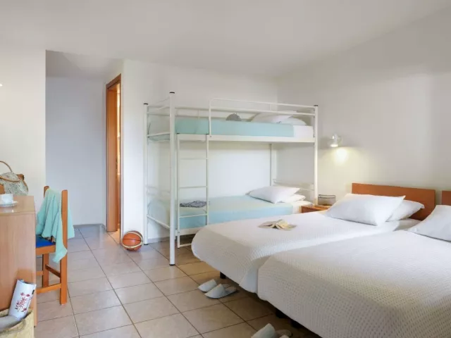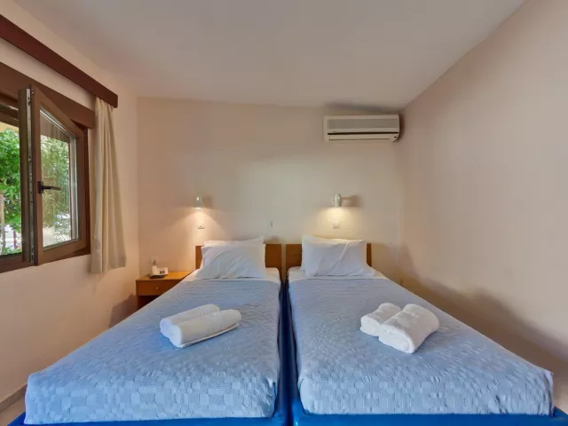 Štandardná izba má rozlohu približne 16-18 m² a je vybavená samostatnými lôžkami pre 2-3 osoby, kúpeľňou so sprchou alebo vaňou a terasou s výhľadom do záhrady. Rodinná izba štandard je priestrannejšia (cca 22 m²) a má manželskú posteľ a dve samostatné lôžka, alebo štyri samostatné lôžka, prípadne poschodovú posteľ pre deti. Rodinná izba classic je rovnaká, ale má súkromný balkón.