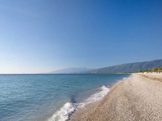 Piesočnatá pláž s kamienkami je vzdialená do 100 m od ubytovania, čo umožňuje rýchly prístup k moru a relaxáciu pri vode.