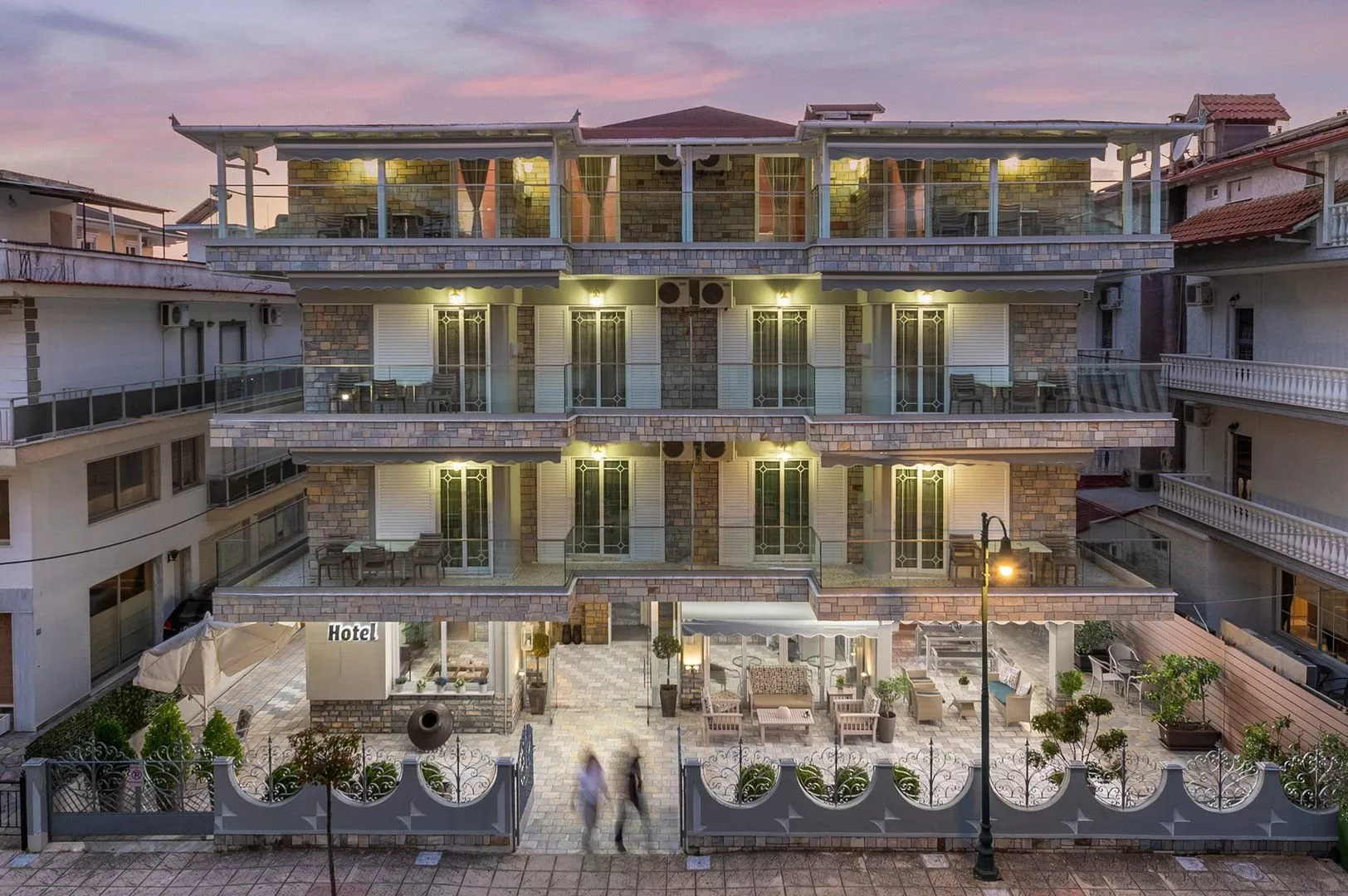 Ouzas Luxury Hotel sa nachádza v Paralii a je umiestnený len približne 170 m od pláže. V jeho blízkosti sa nachádzajú rôzne reštaurácie, bary a obchody. Väčšie mestské vybavenie je dostupné v približne 7 km vzdialenom mestečku Katerini. Letisko Thessaloniki je vzdialené asi 100 km.