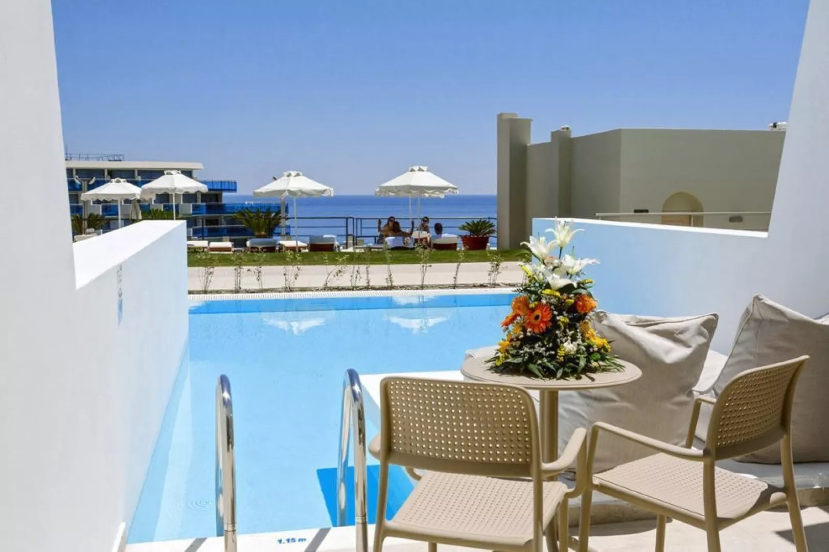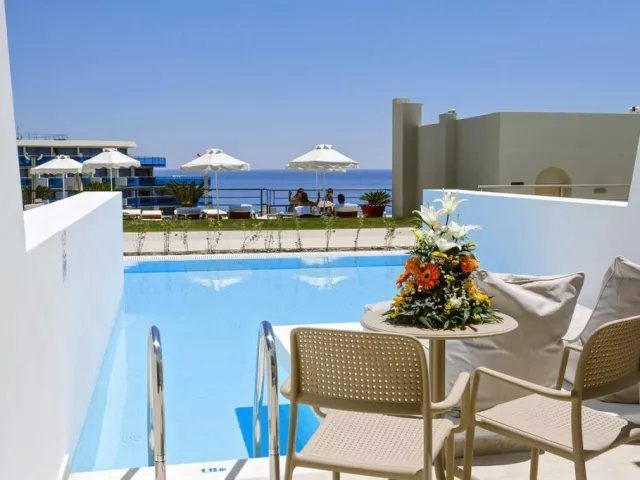 V pokojnejšej časti Faliraki s výhľadom na more. Približne 2 km od živého centra Faliraki s množstvom taverien, reštaurácií, barov a obchodov. Najväčší vodný park na ostrove vzdialený približne 2 km. Hlavné mesto Rhodos cca 13 km. Medzinárodné letisko Rhodos je vzdialené cca 19 km.
