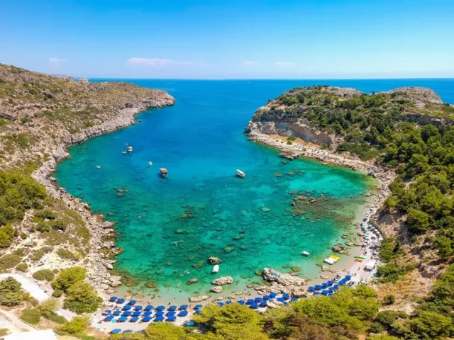 Hotel Cathrin sa nachádza nad prekrásnou romantickou zátokou Ladikó s azúrovým morom a štrkovo-piesočnatou plážou s pozvoľným vstupom do mora. Milovníci krásnych zákutí môžu navštíviť zátoku Anthony Quinn Bay, ktorá je len niekoľko desiatok metrov od pláže Ladikó. Typická grécka rodinná atmosféra a výnimočná poloha hotela robia toto miesto ideálnym na relaxáciu.
