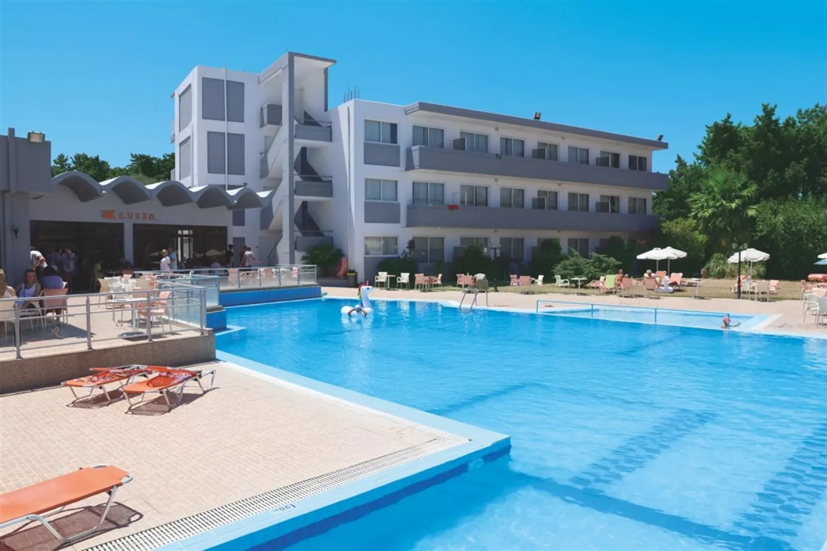 mnohými sezónami overený hotel Evi patrí vďaka kombinácii rodinnej atmosféry, výbornej polohy a extra výhodnej ceny k našim dlhoročným stáliciam. Areál s udržiavanou záhradou, veľkým bazénom a trávnatou plochou je stvorený na ničím nerušený oddych. Výhodou je široká pláž v blízkosti. Neďaleké centrum strediska Faliraki láka návštíviť jeho početné obchodíky, bary, a útulné taverny, či vyskúšať mnohé letné atrakcie, pričom najmä najmladší dovolenkári ocenia možnosť navštíviť jeden z najväčších aquaparkov v Európe.