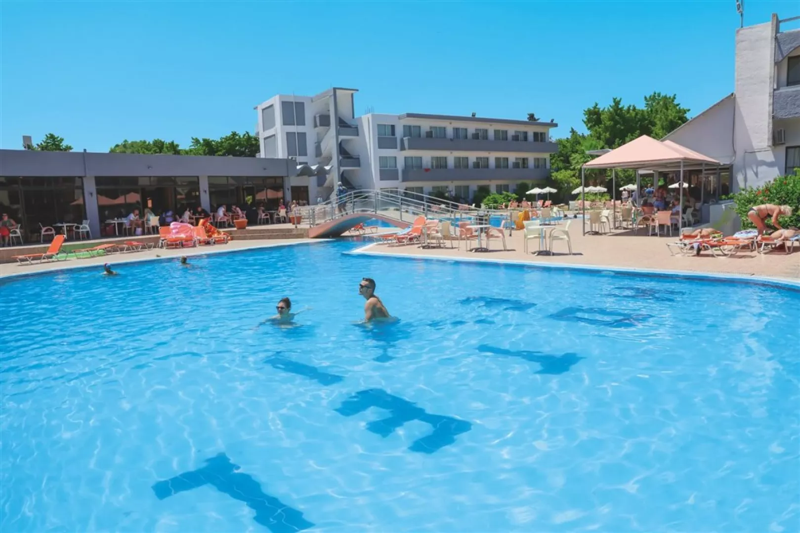 formou all inclusive ALL INCLUSIVE » raňajky, obedy a večere formou švédskych stolov vrátane nápojov • ľahké občerstvenie počas dňa vo vyhradených hodinách v snack /pool bare • zmrzlina vo vyhradenom čase • miestne alkoholické nápoje: gin, vodka, rum, brandy, ouzo podávané vo vyhradenom čase • čapované pivo, biele a červené víno miestnej produkcie, rozlievané nealkoholické nápoje, káva a čaj • ležadlá a slnečníky pri bazéne