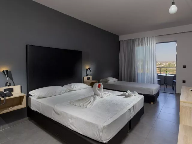 Ponuka izieb zahŕňa 2-lôžkové izby (štandard alebo s oddeleným bazénom pre deti od 6 rokov), rodinné izby s oddelenými miestnosťami a izby s prístelkami. Každá izba je vybavená kúpeľňou, sušičom na vlasy, minichladničkou, trezorom (za poplatok), telefónom, SAT/TV a bezplatným Wi-Fi pripojením. Hostia si môžu vychutnať balkón alebo terasu.