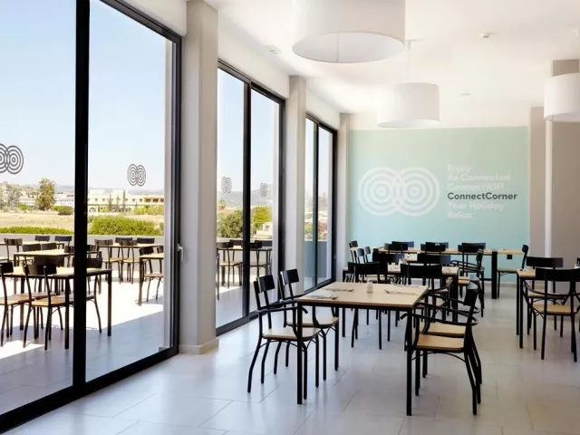 Hotel ponúka moderné zariadenie vrátane vstupnej haly s recepciou, vonkajšieho bazénu, bazéna s 3 toboganmi, reštaurácie s bufetovým stravovaním, barov a slnečnej terasy s ležadlami a slnečníkmi zdarma. K dispozícii je aj požičovňa bicyklov, áut, obchod so suvenírmi, parkovisko a výťahy.